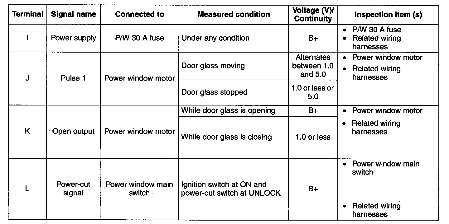 Power Window Subswitch Inspection