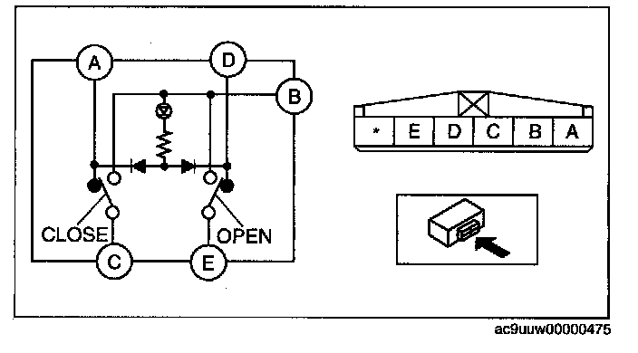 1. Inspect for continuity between the power window subswitch terminals.
