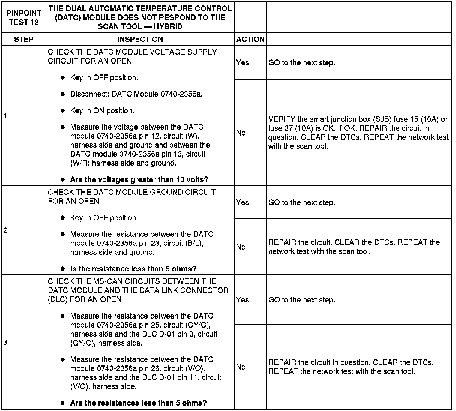 PINPOINT TEST 12: THE DUAL AUTOMATIC TEMPERATURE CONTROL (DATC) MODULE DOES NOT RESPOND TO THE SCAN TOOL - HYBRID