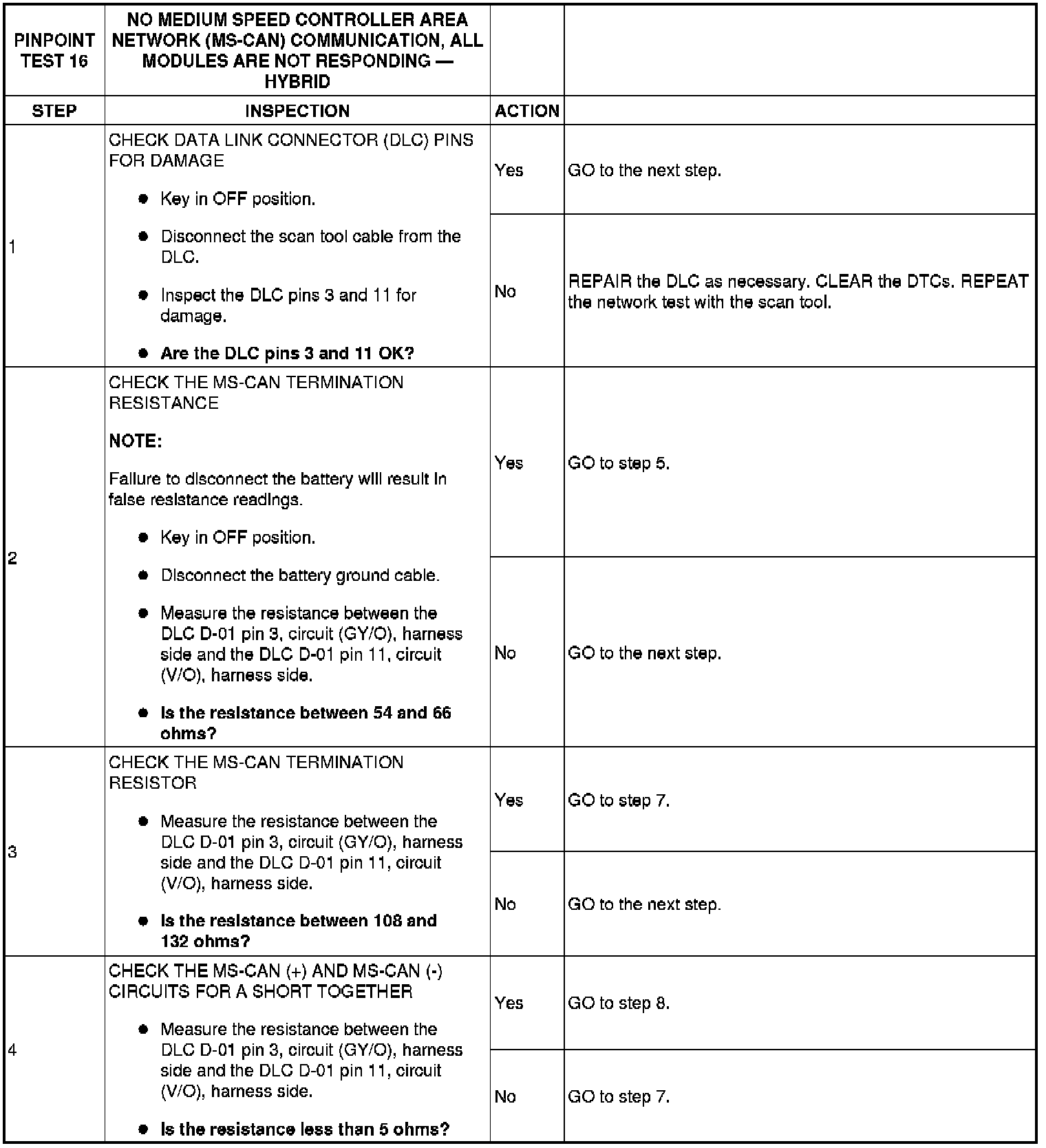 PINPOINT TEST 16: NO MEDIUM SPEED CONTROLLER AREA NETWORK (MS-CAN) COMMUNICATION, ALL MODULES ARE NOT RESPONDING - HYBRID