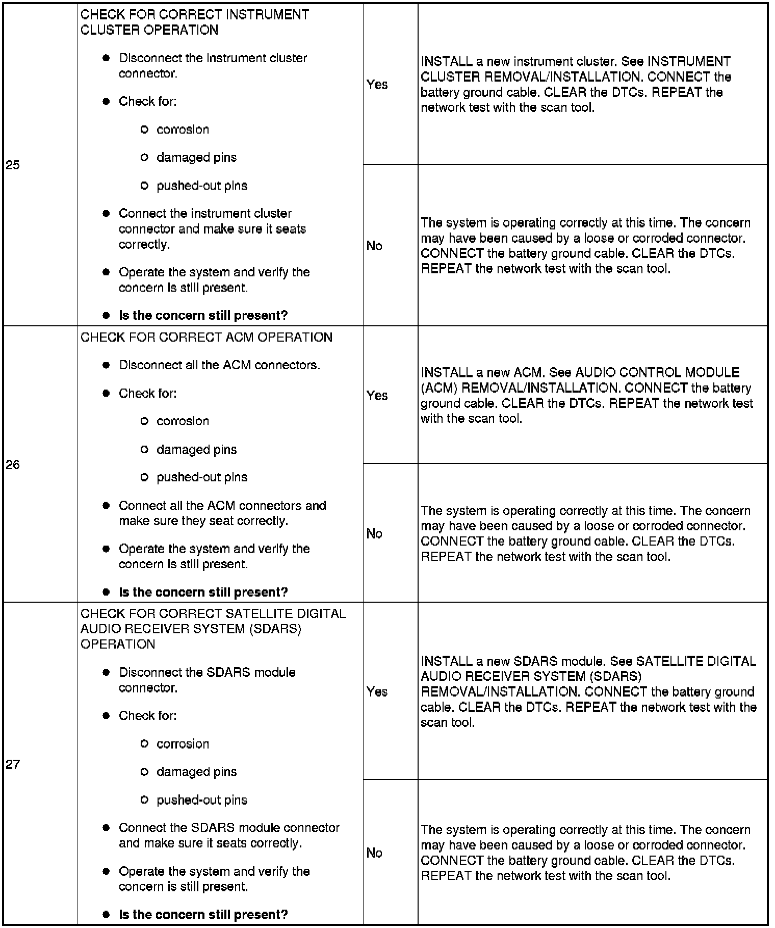 The medium speed controller area network (MS-CAN) uses an unshielded twisted pair cable, circuits (GY/O) and (V/O). The smart junction box (SJB), audio control module (ACM), dual automatic temperature control (DATC) module, satellite digital audio receiver system (SDARS) module, front display interface module (FDIM) and front controls interface module (FCIM) communicate with the scan tool using the MS-CAN network. The instrument cluster, while on the MS-CAN network, communicates with the scan tool only on the HS-CAN network.