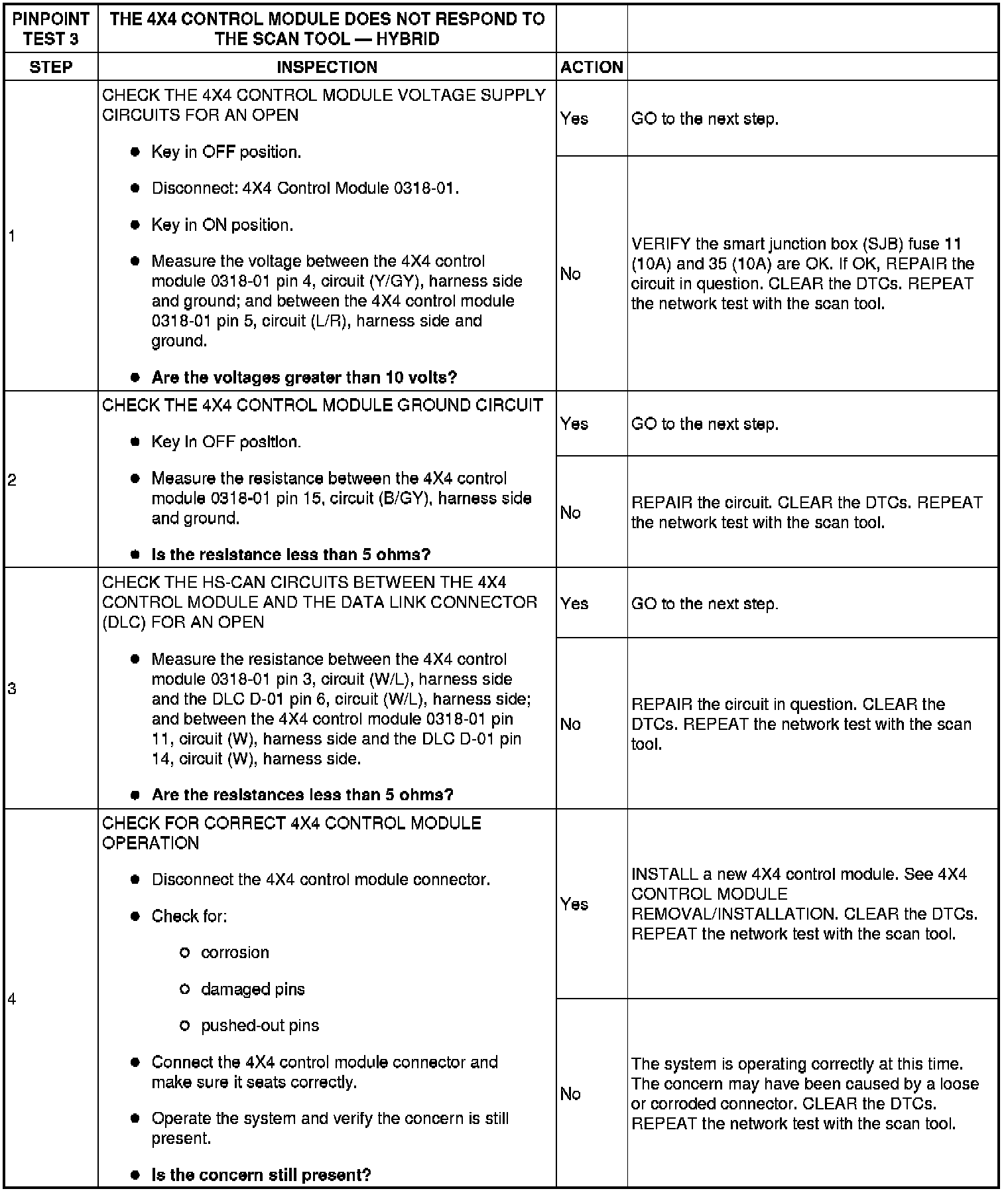 PINPOINT TEST 3: THE 4X4 CONTROL MODULE DOES NOT RESPOND TO THE SCAN TOOL - HYBRID