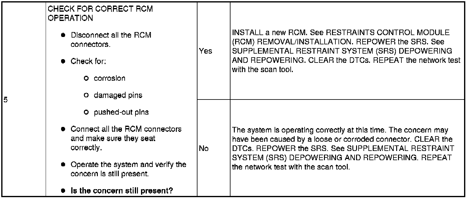 Pinpoint Test 5: The Restraints Control Module (RCM) Does Not Respond To The Scan Tool