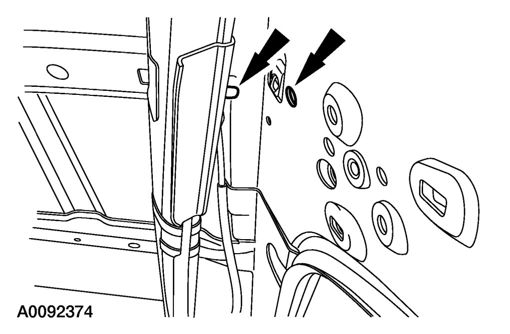 5. Attach the A-pillar tether pin-type retainer to the A-pillar.