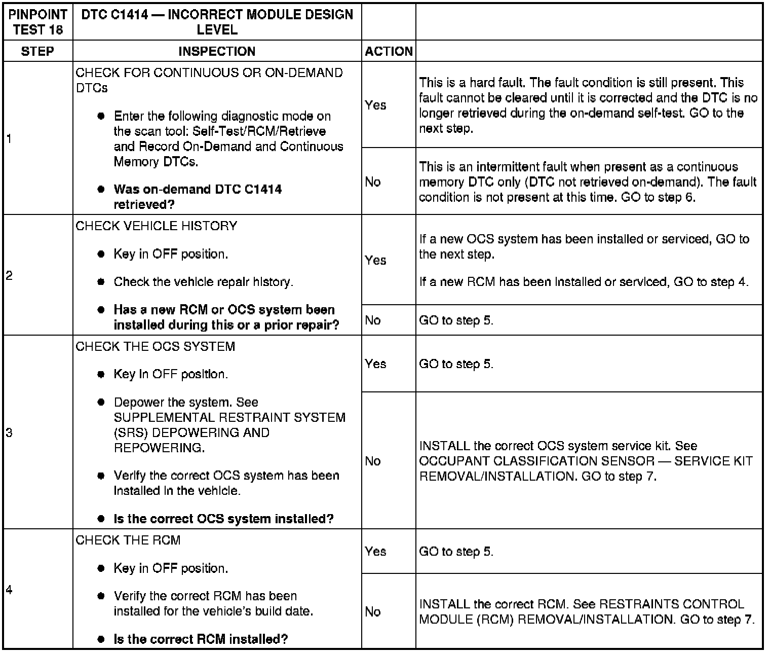 PINPOINT TEST 18: DTC C1414 - INCORRECT MODULE DESIGN LEVEL