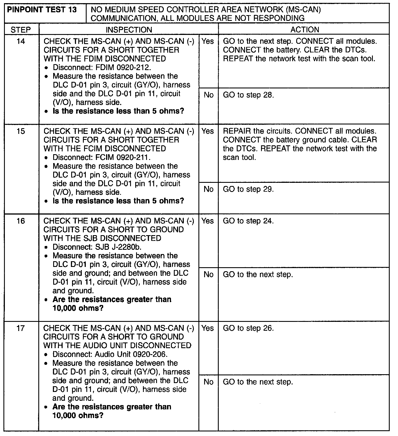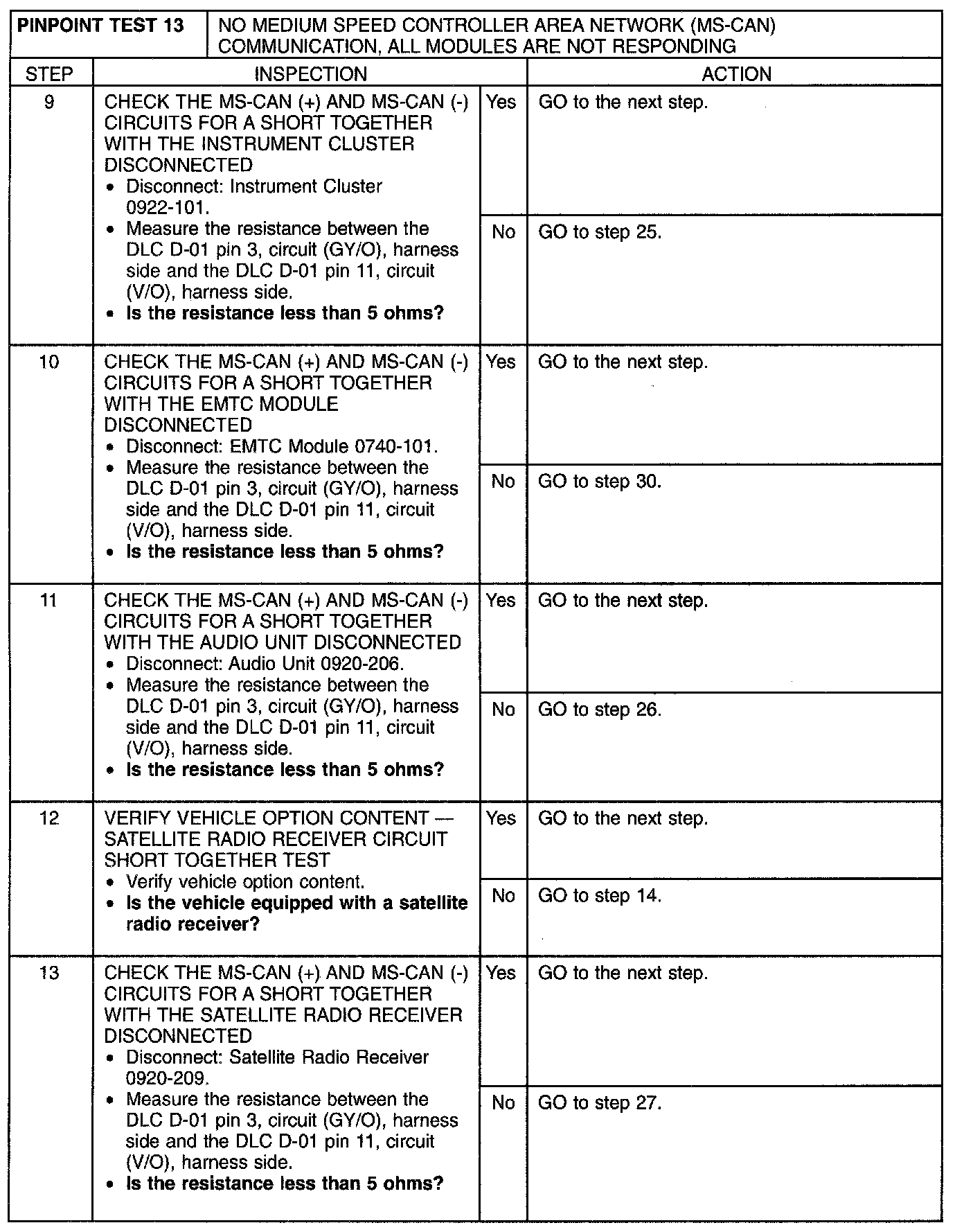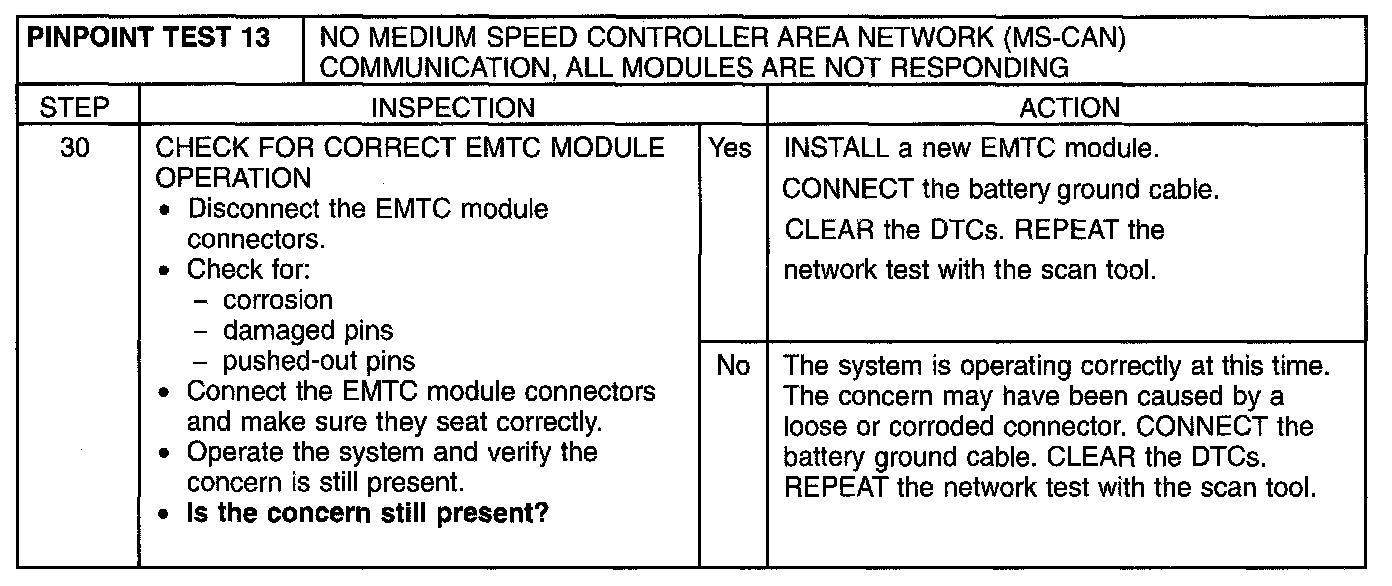 Pinpoint Test 13: No Medium Speed Controller Area Network (MS-CAN) Communication, All Modules Are Not Responding