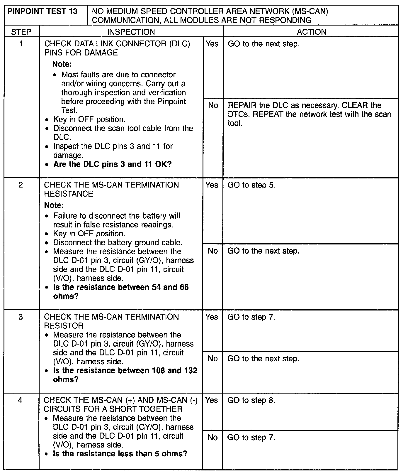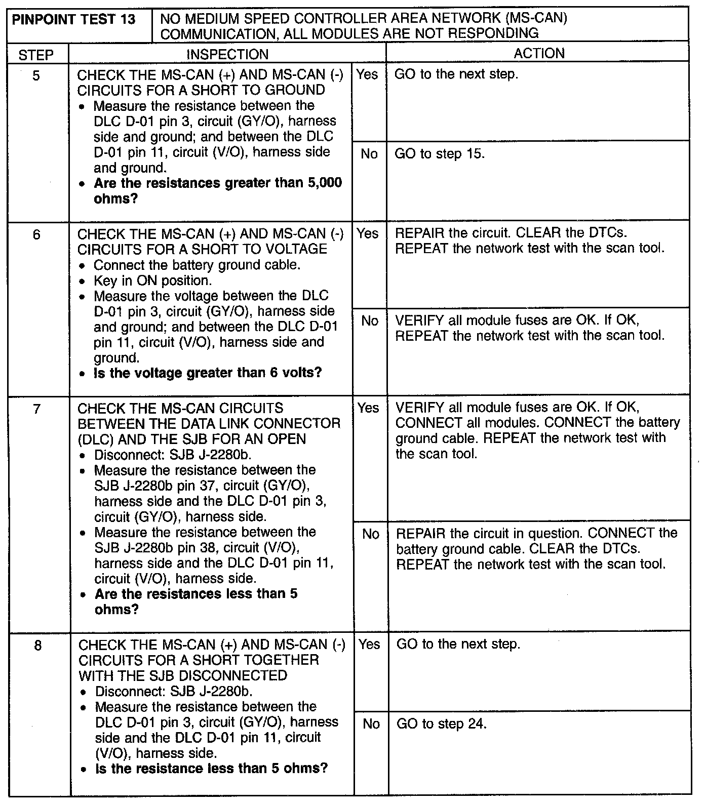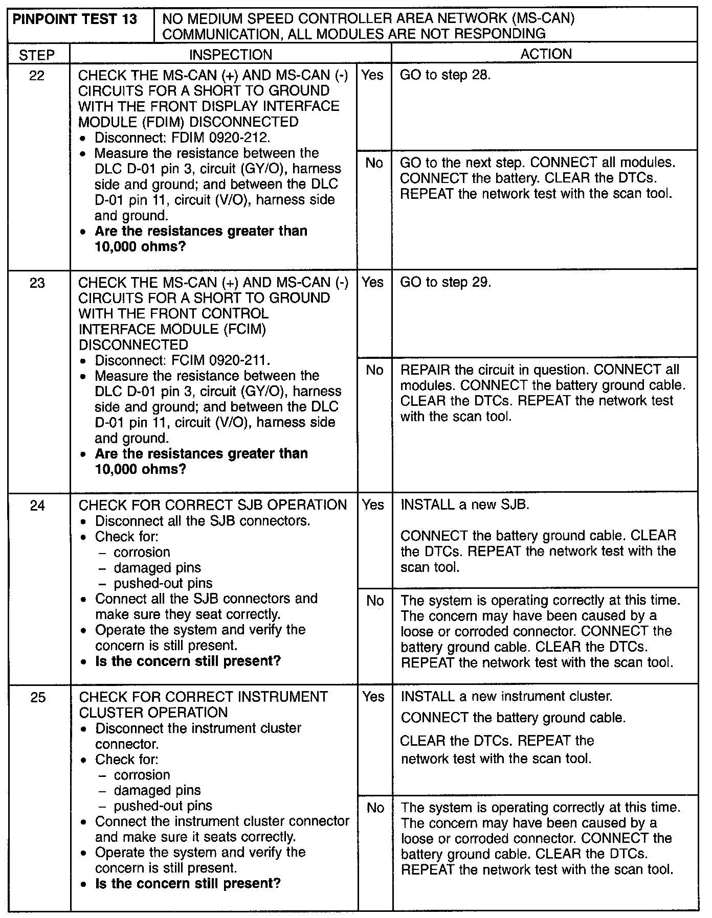 Pinpoint Test 13: No Medium Speed Controller Area Network (MS-CAN) Communication, All Modules Are Not Responding
