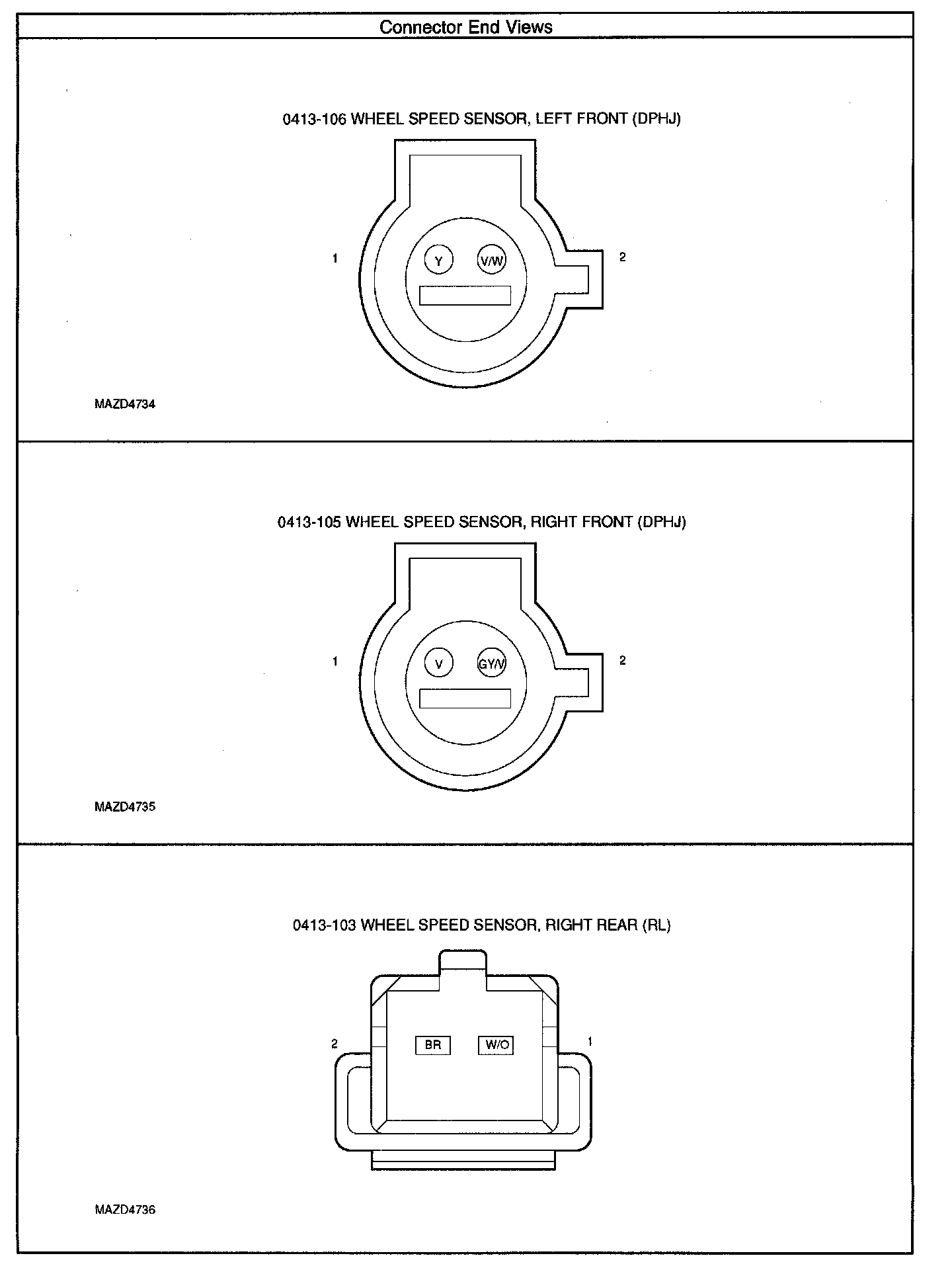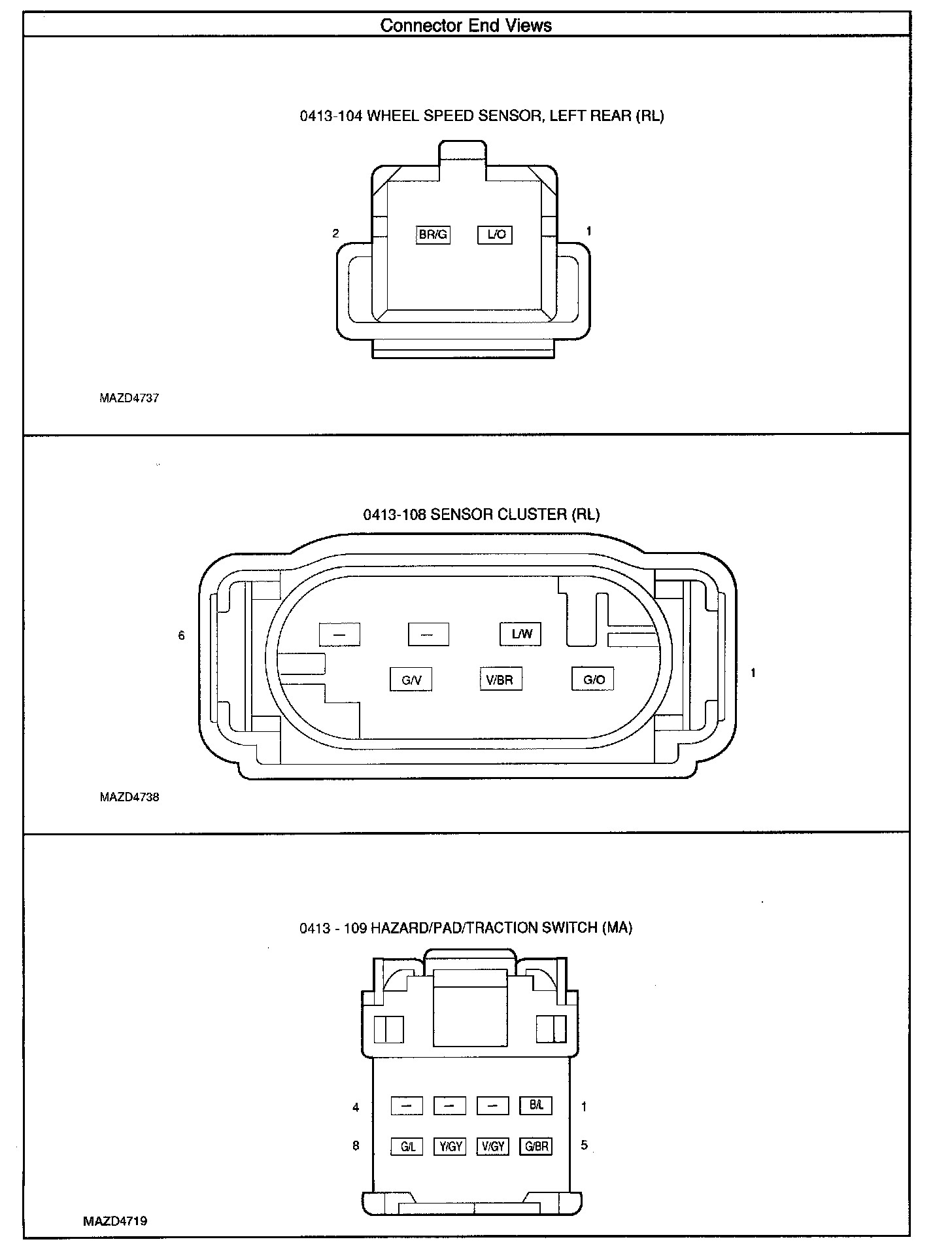 CONNECTOR END VIEWS - ANTI-LOCK BRAKE SYSTEM (ABS)