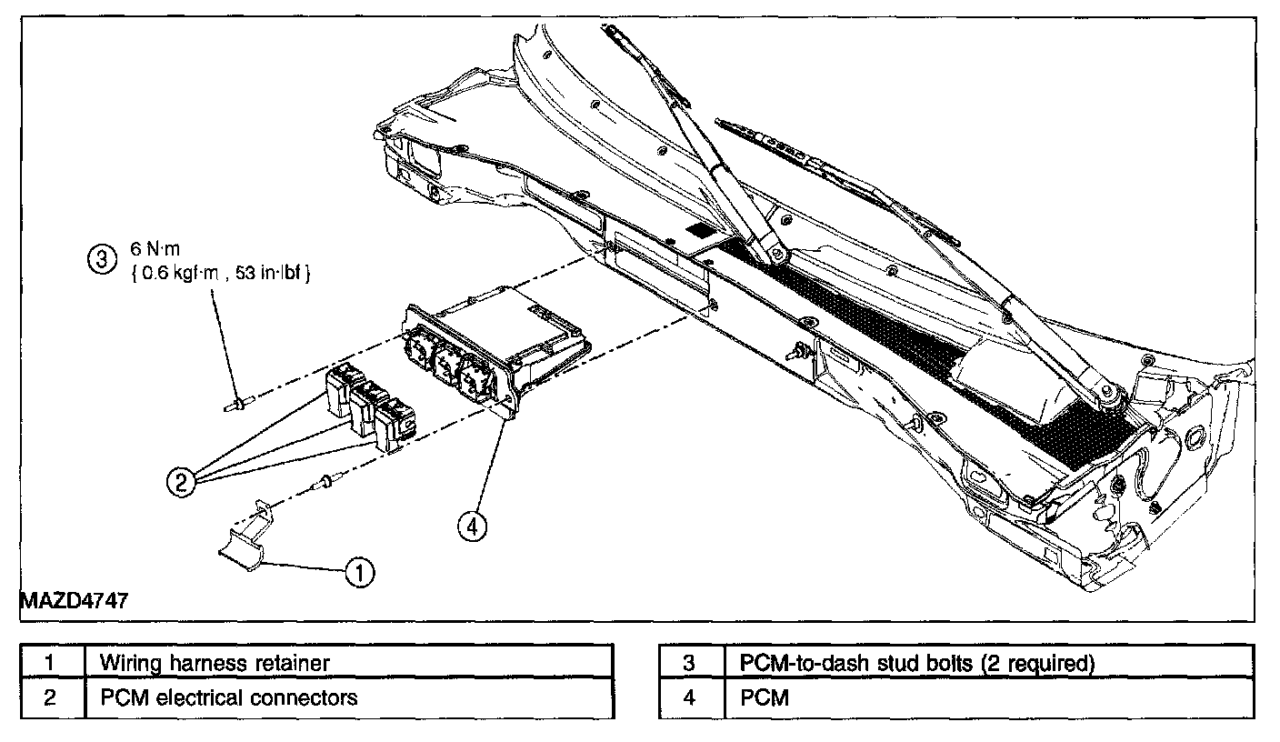 4. Position the wiring harness and install the PCM stud bolt nut.