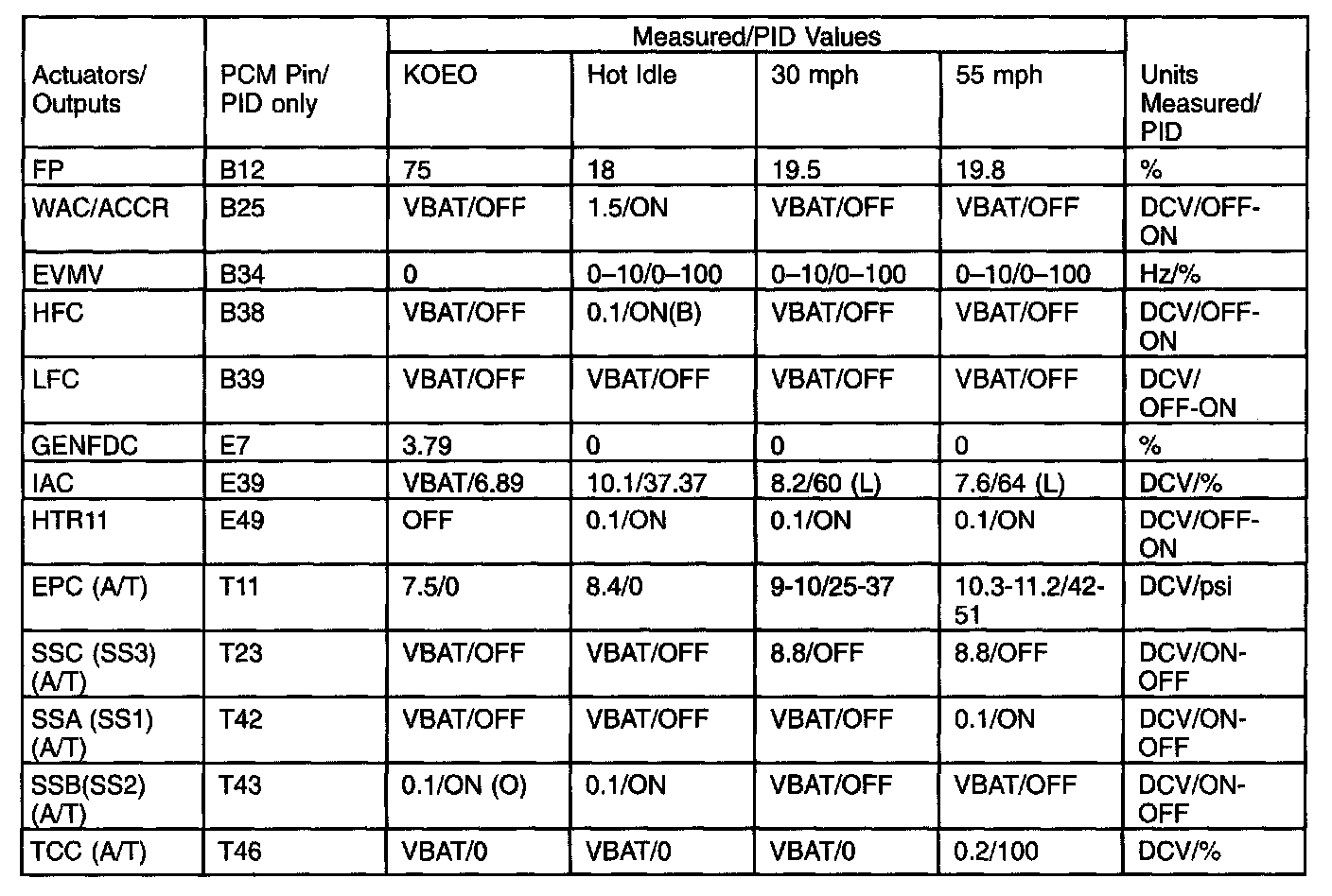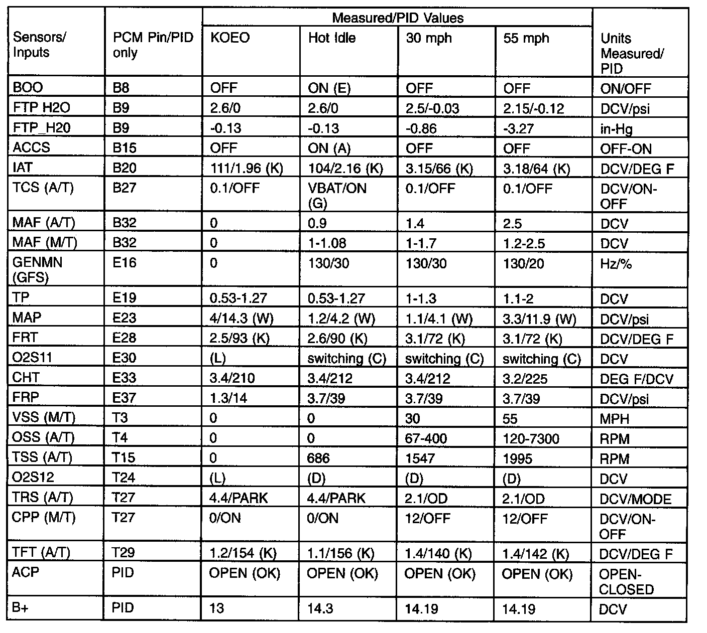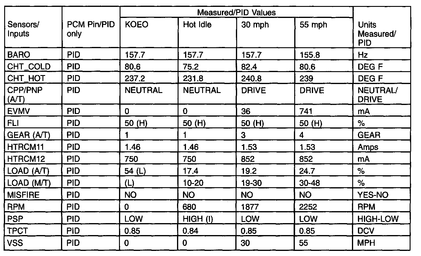 Typical Diagnostic Reference Values (2.3L) (Part 1):