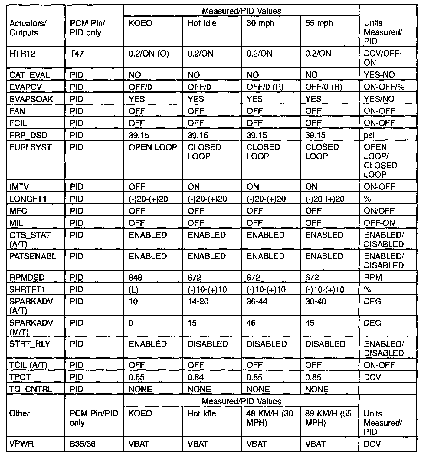 PID/Data Monitor Reference Value (2.3L) (Part 1):