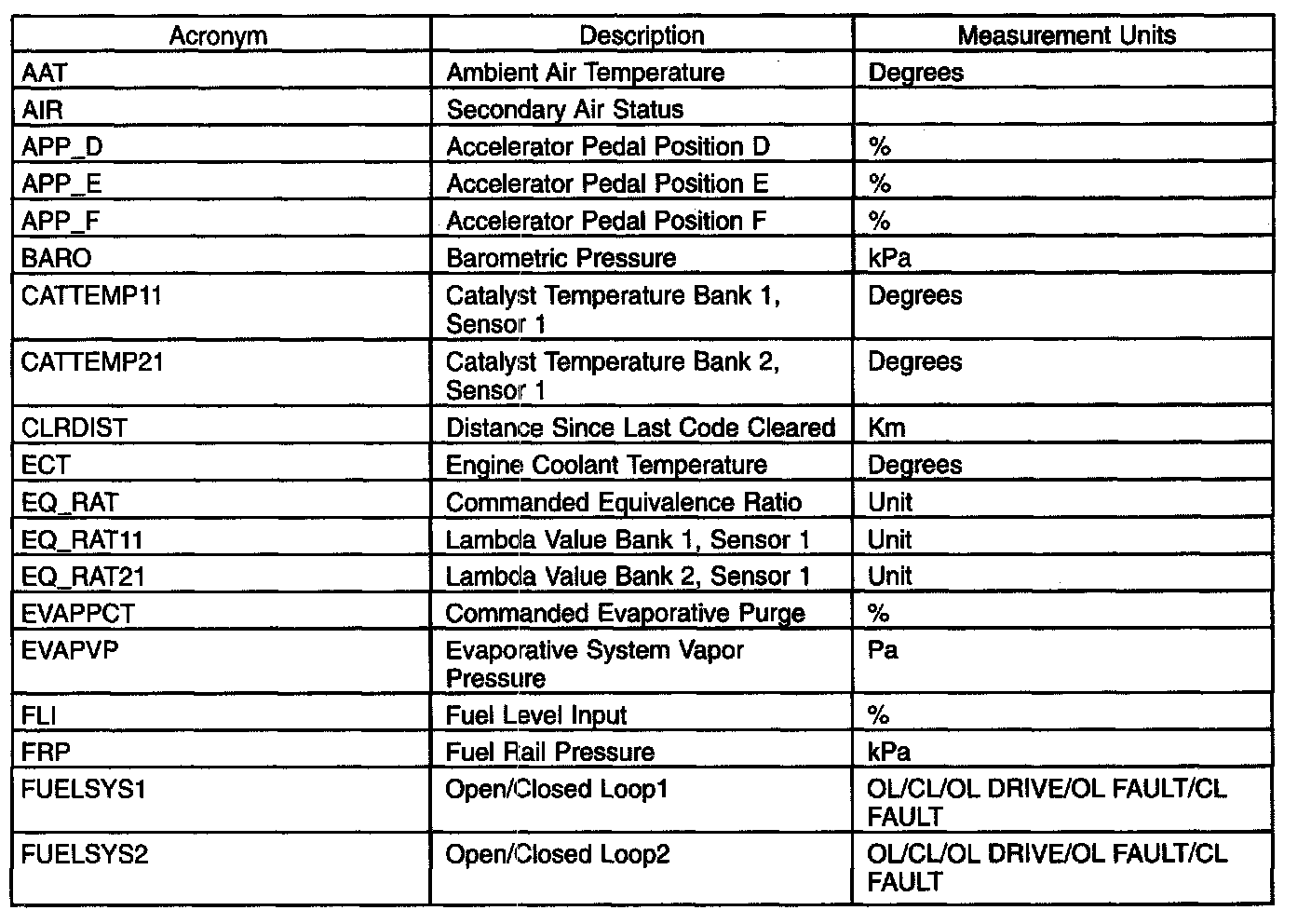 NOTE: MFF PIDs are supported on all vehicles but may not be available on all scan tools because enhanced PID access may vary by scan tool manufacturer.