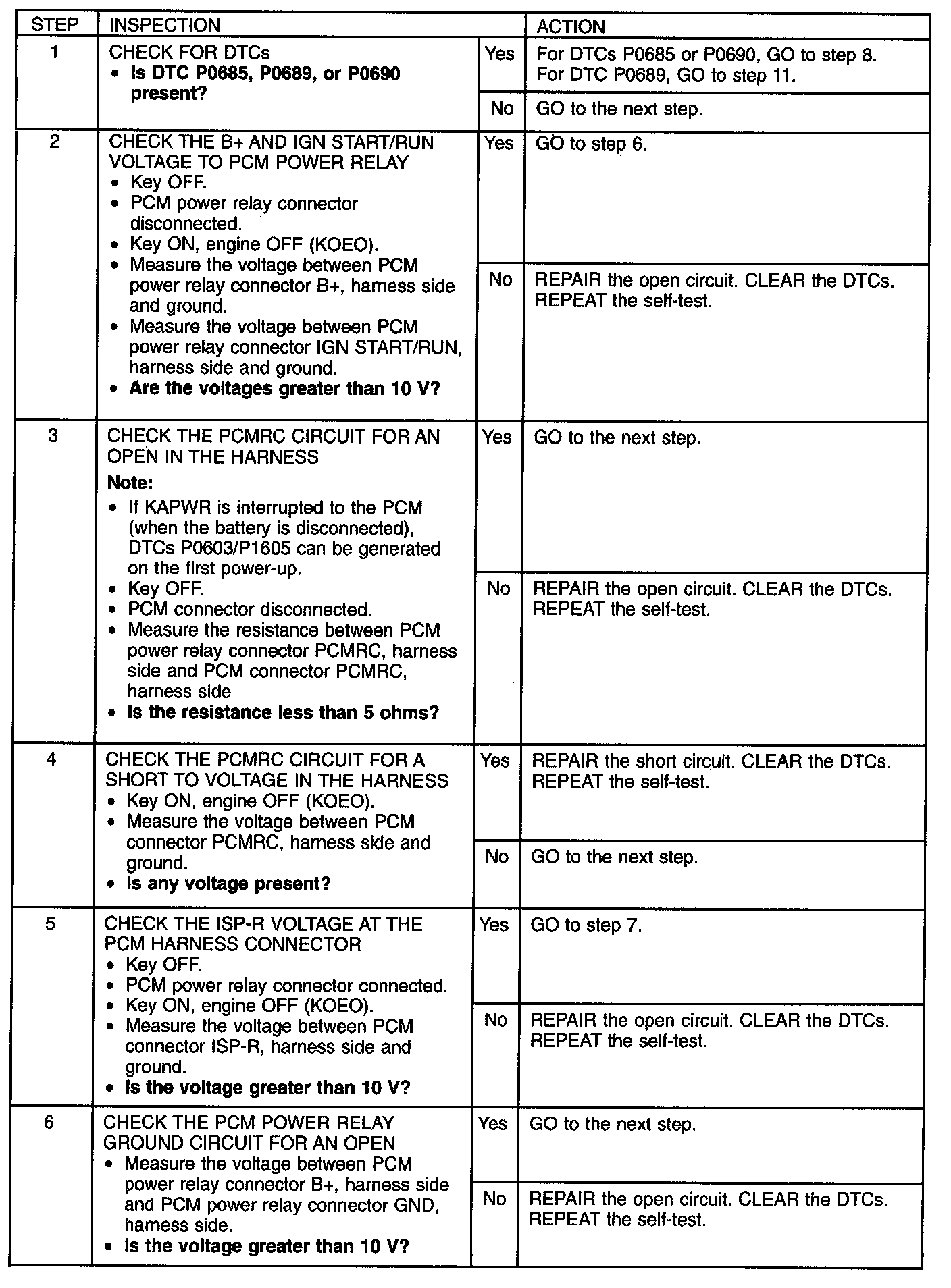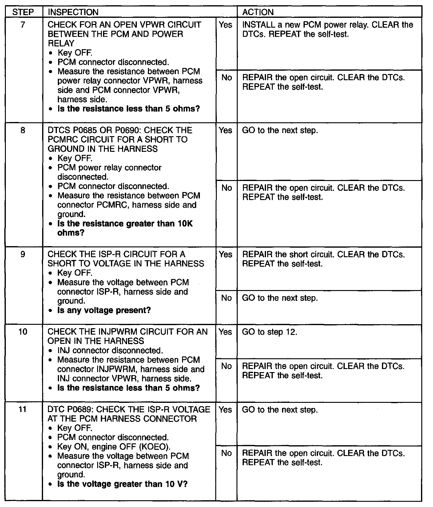 - Harness circuits: B+, IGN START/RUN, INJPWRM, ISP-R, PCMRC, VPWR and GND