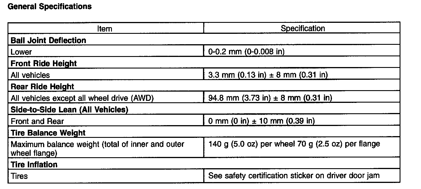 General Specifications: