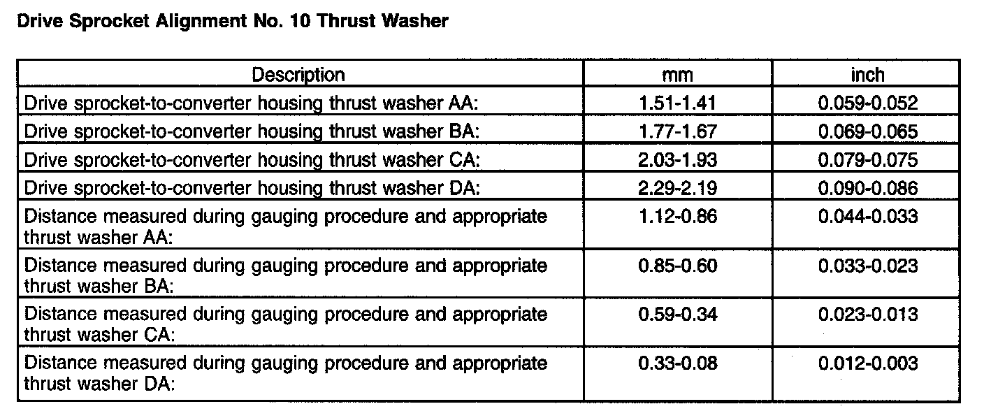 Drive Sprocket Alignment No. 10 Thrust Washer: