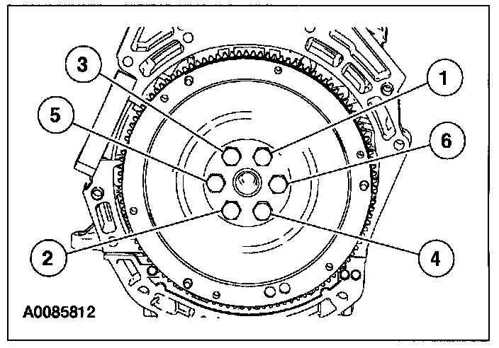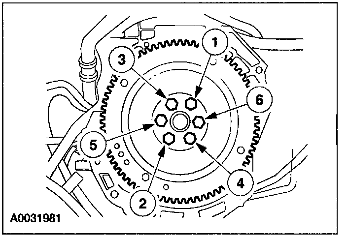 Install the flexplate and the bolts. Tighten the bolts in the sequence shown in 3 stages.
