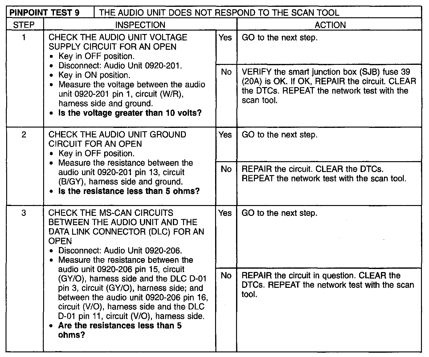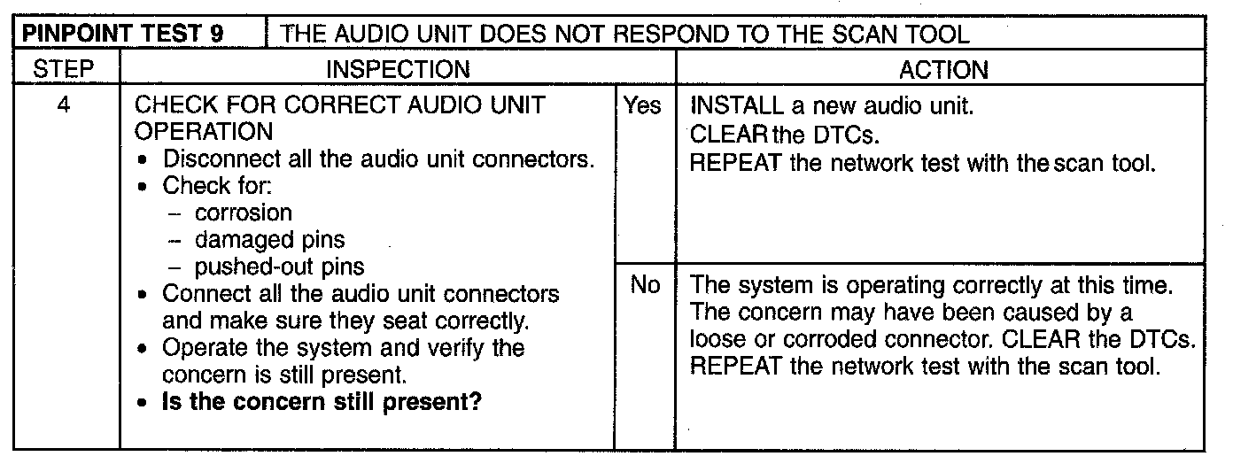 Pinpoint Test 9: The Audio Unit Does Not Respond to the Scan Tool