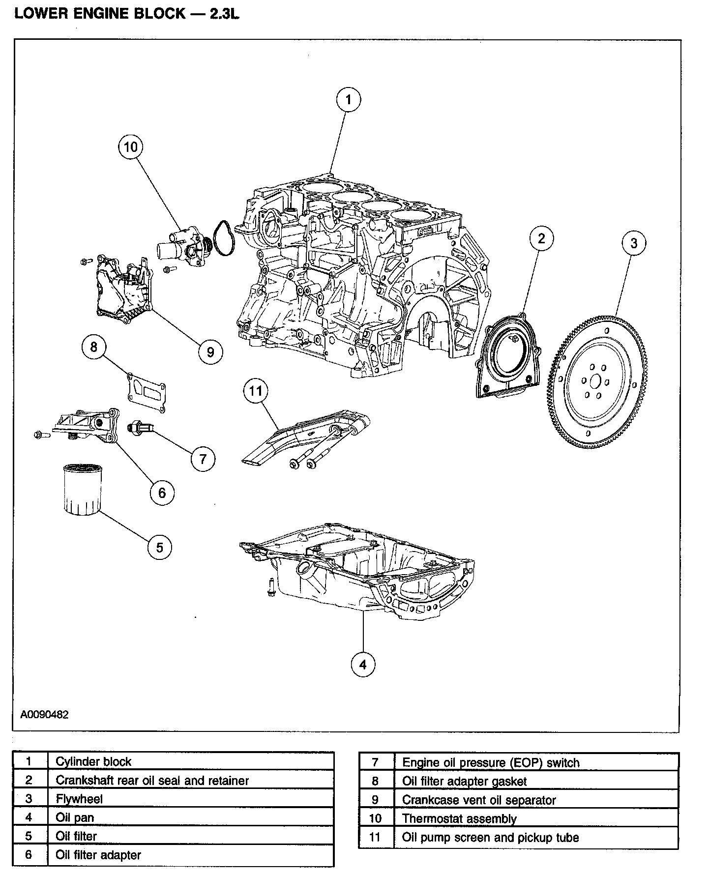 LOWER ENGINE BLOCK - 2.3L EXPLODED VIEWLower Engine Block - 2.3L: