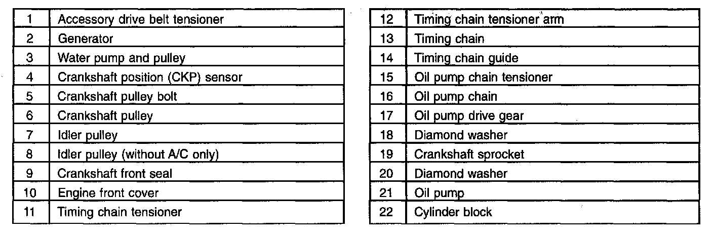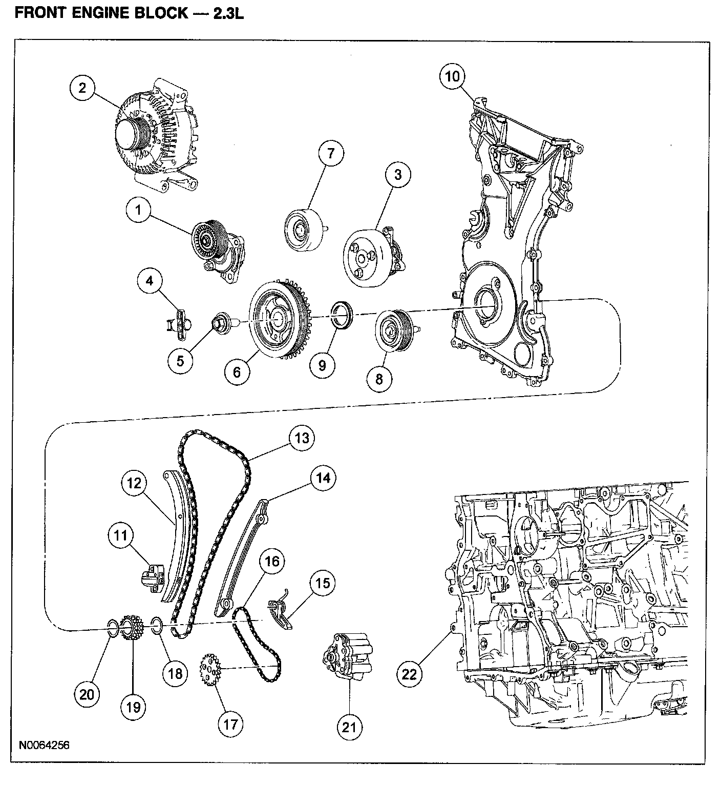 FRONT ENGINE BLOCK - 2.3L EXPLODED VIEW
