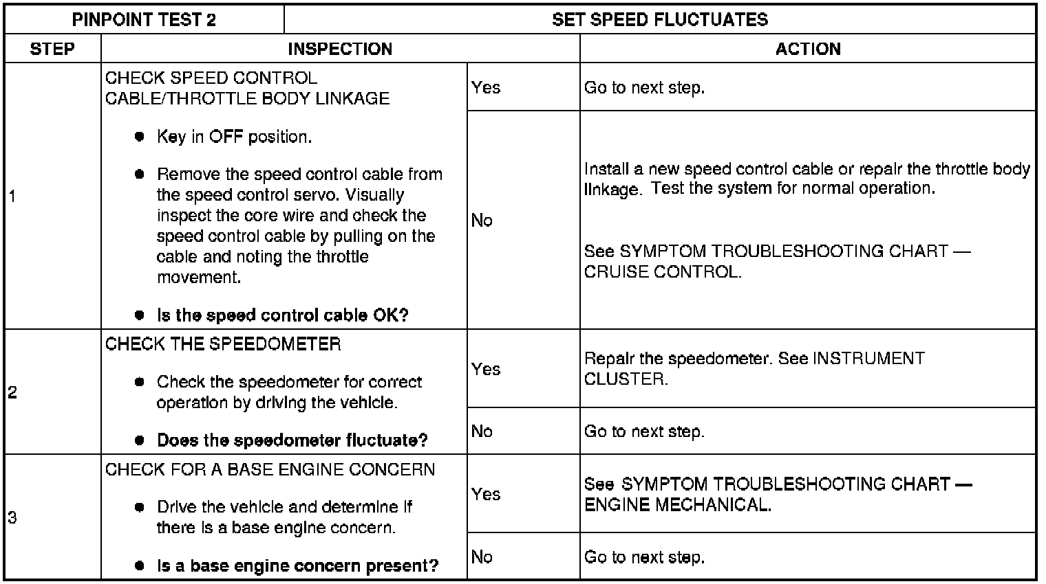 SYSTEM PINPOINT TEST 2: SET SPEED FLUCTUATES