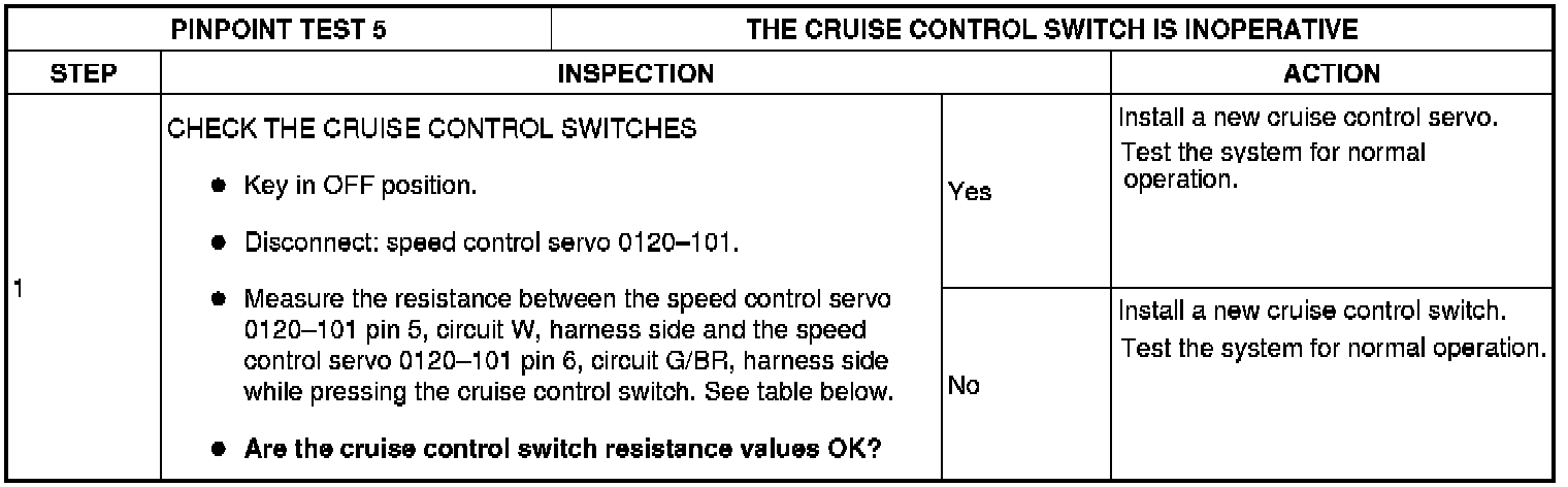 Pinpoint Test 5: Cruise Control Switch Is Inoperative