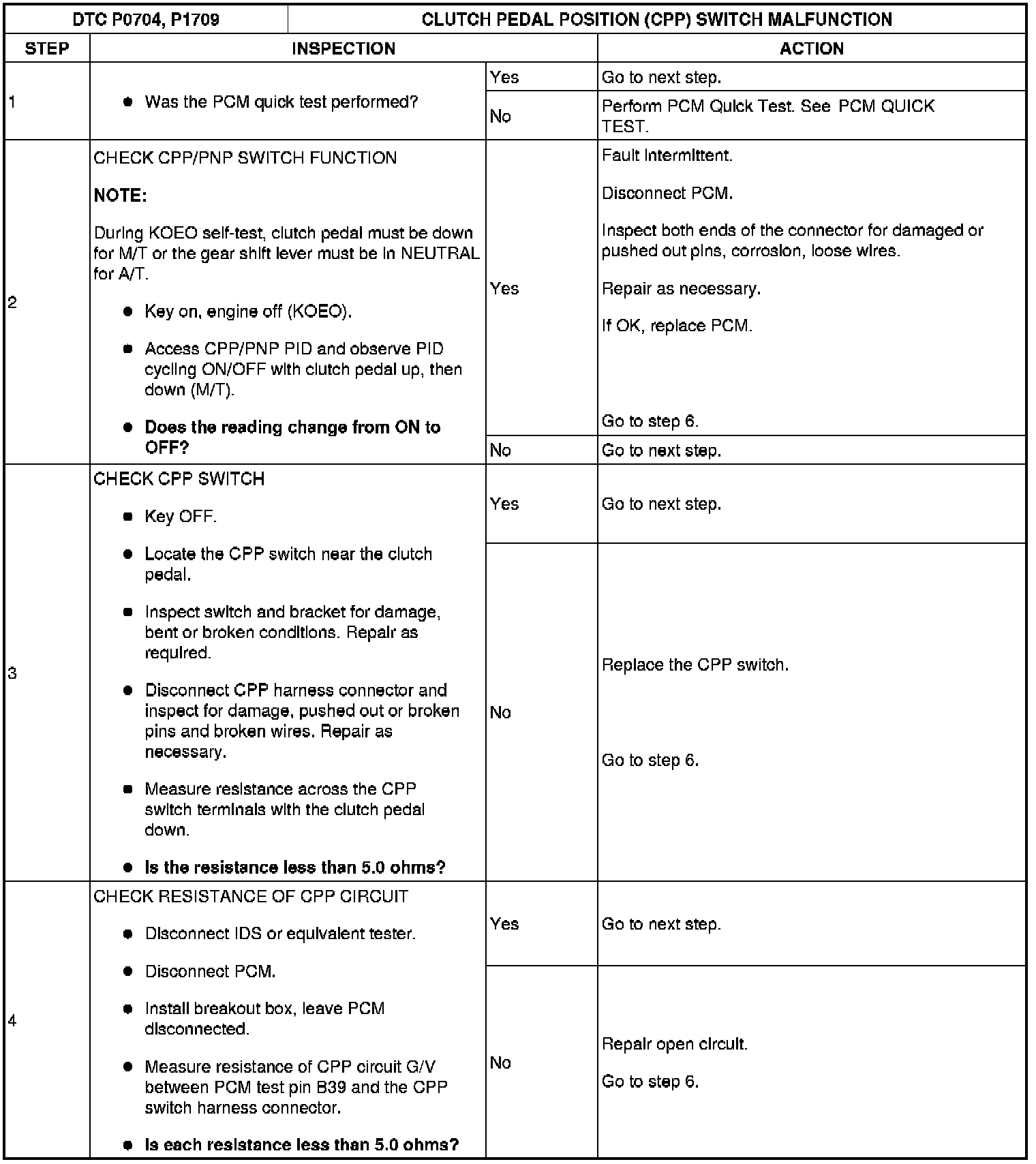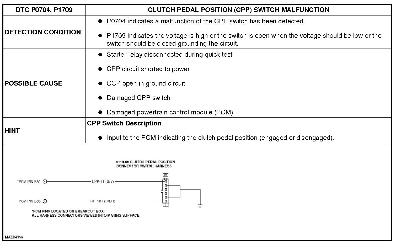 CLUTCH PEDAL POSITION (CPP) SWITCH MALFUNCTION