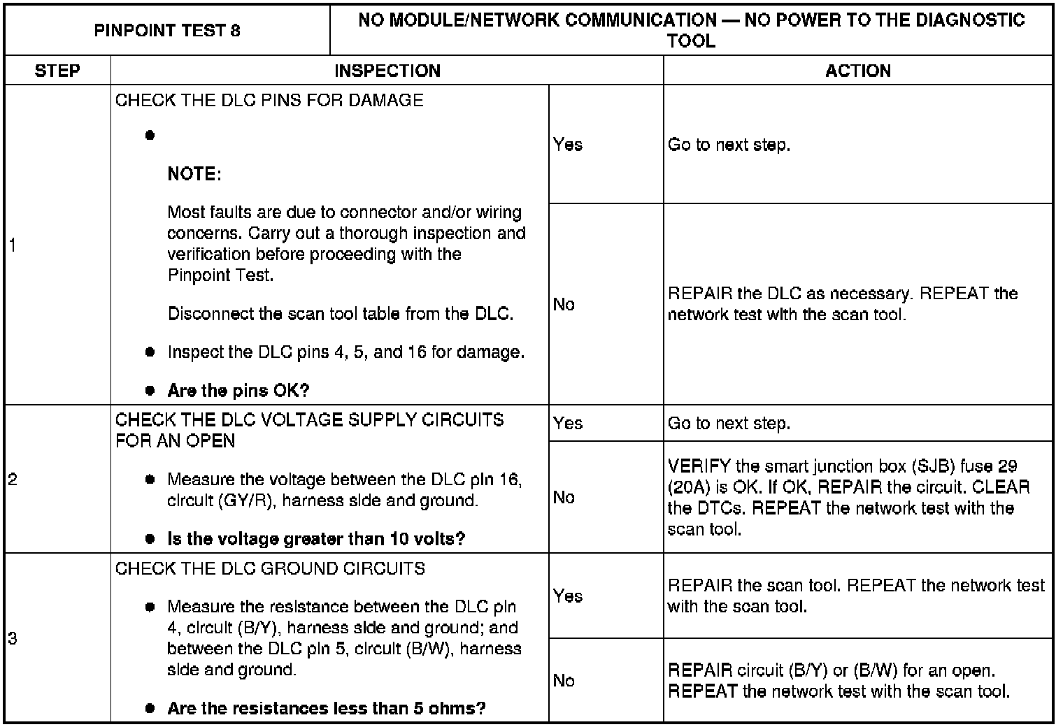 Pinpoint Test 7: No Module/Network Communication - No Power To The Diagnostic Tool