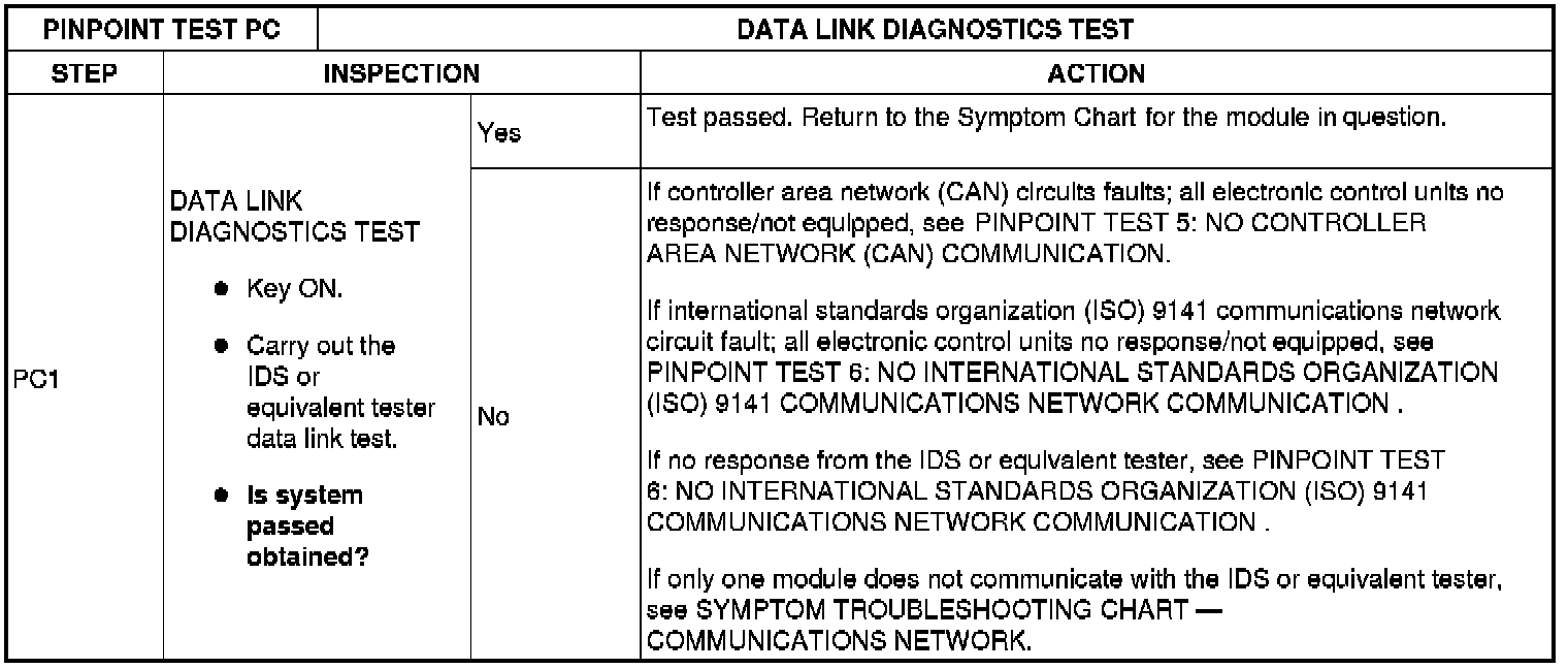 PINPOINT TEST PC: DATA LINK DIAGNOSTICS TEST