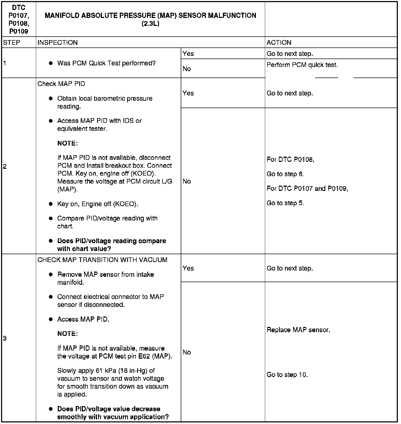 MANIFOLD ABSOLUTE PRESSURE (MAP) SENSOR MALFUNCTION (2.3L)