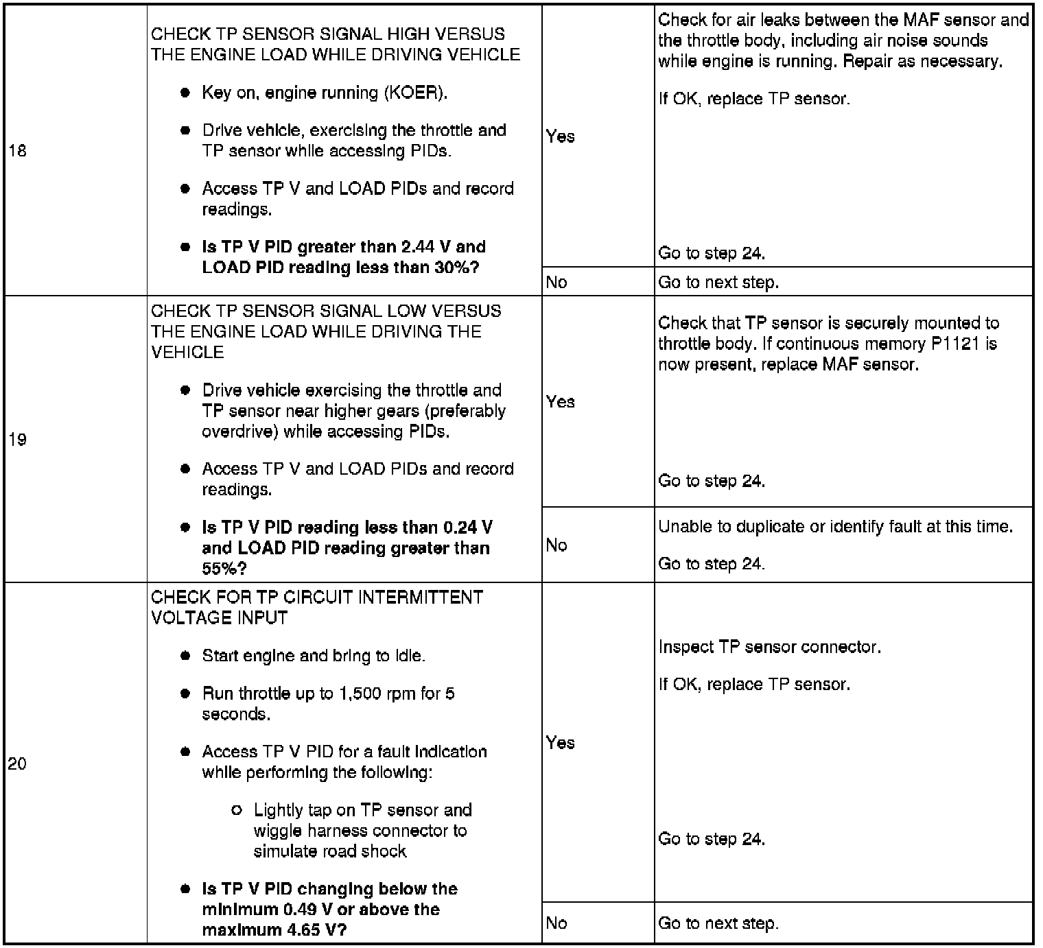 THROTTLE POSITION (TP) SENSOR CIRCUIT MALFUNCTIONDetection Condition/Possible Cause (Part 1):