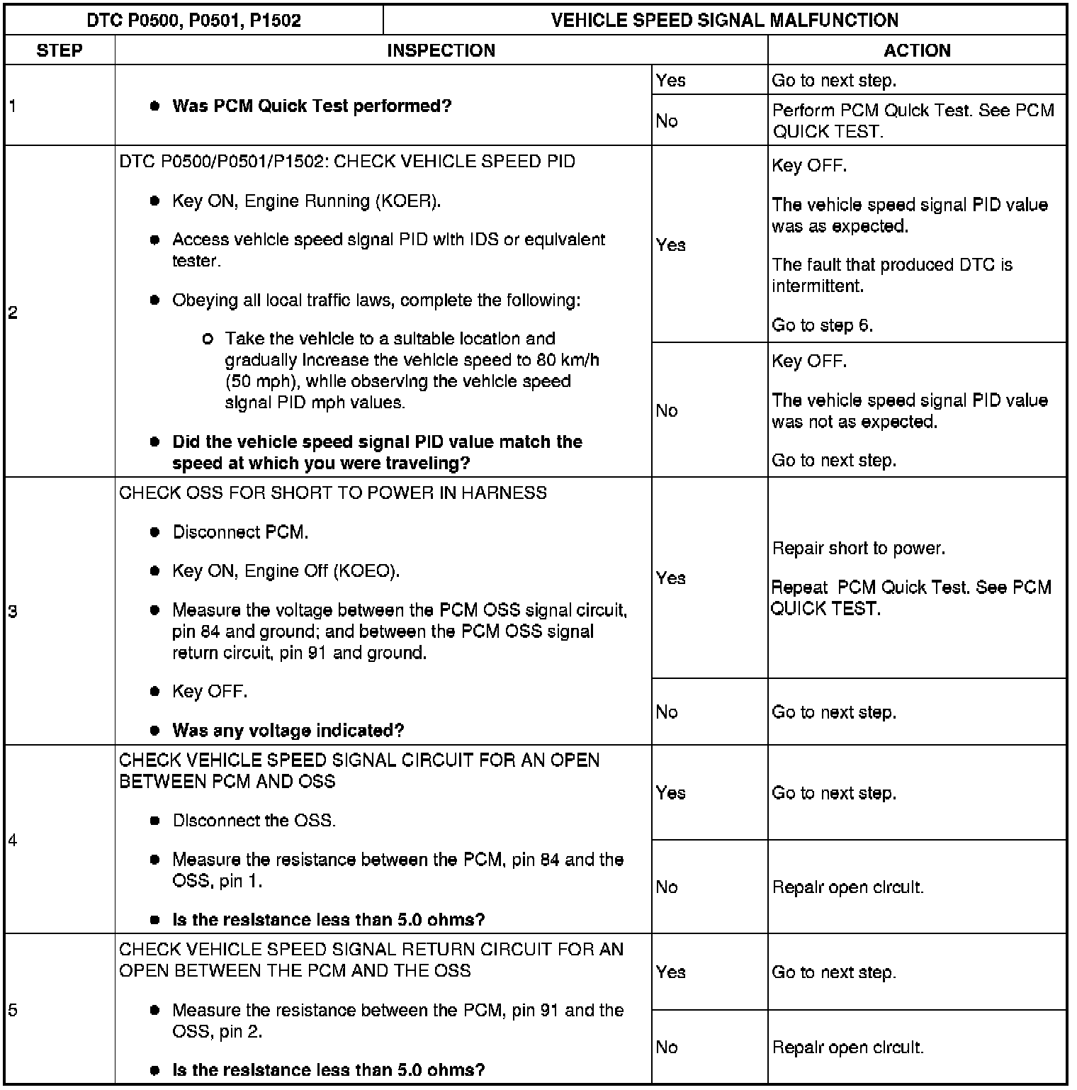 VEHICLE SPEED SIGNAL MALFUNCTION