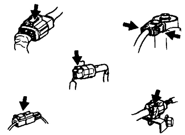 Connectors can be disconnected by pressing or pulling the lock lever as shown.