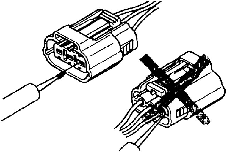 When a tester is used for checking continuity or measuring voltage, insert the tester probe from the wiring harness side.