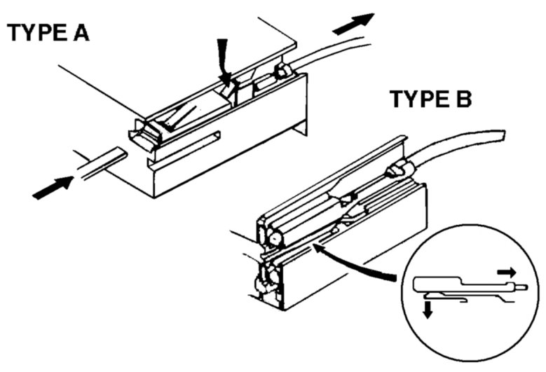 Use the appropriate tools to remove a terminal as shown. While installing a terminal, be sure to insert it until it locks securely.