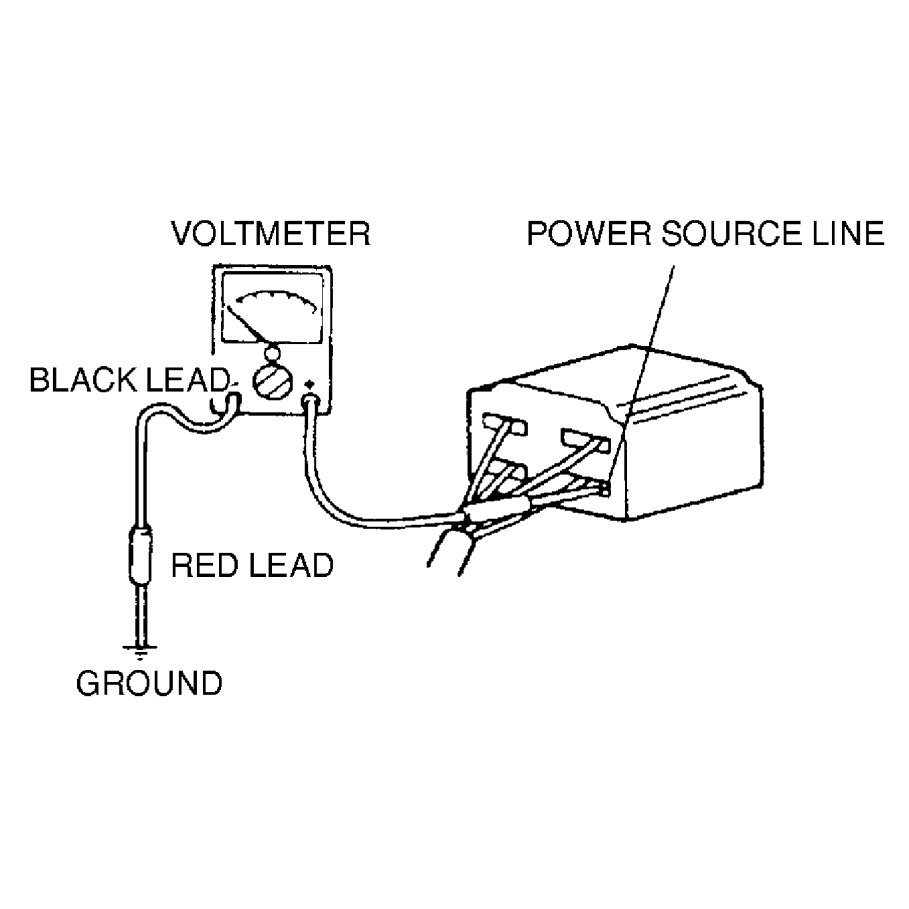The DC voltmeter is used to measure circuit voltage. A voltmeter with a range of 15 V or more is used by connecting the positive (+) probe (red lead wire) to the point where voltage will be measured and the negative (-) probe (black lead wire) to a body ground.