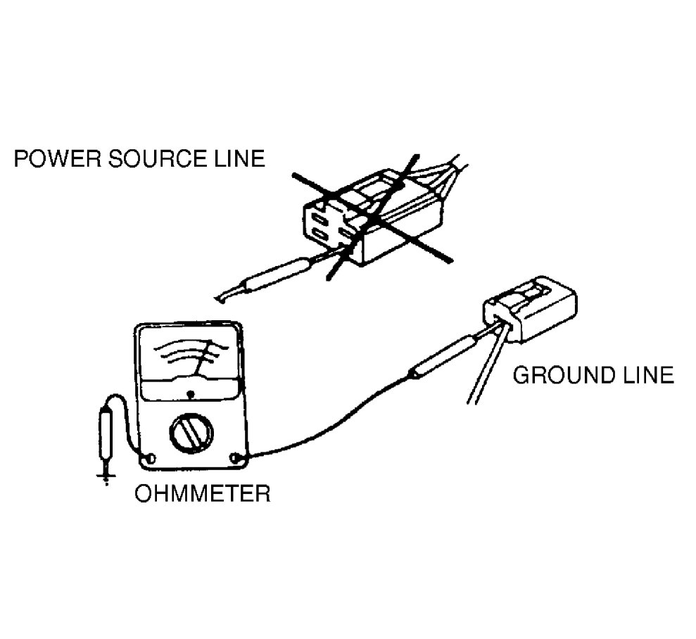 CAUTION:Do not connect the ohmmeter to any circuit where voltage is applied. This will damage the ohmmeter.