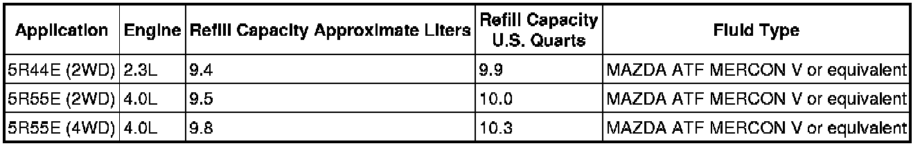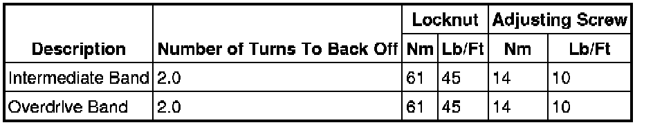 Band Adjustment And Torque Chart (5R44E and 5R55E)