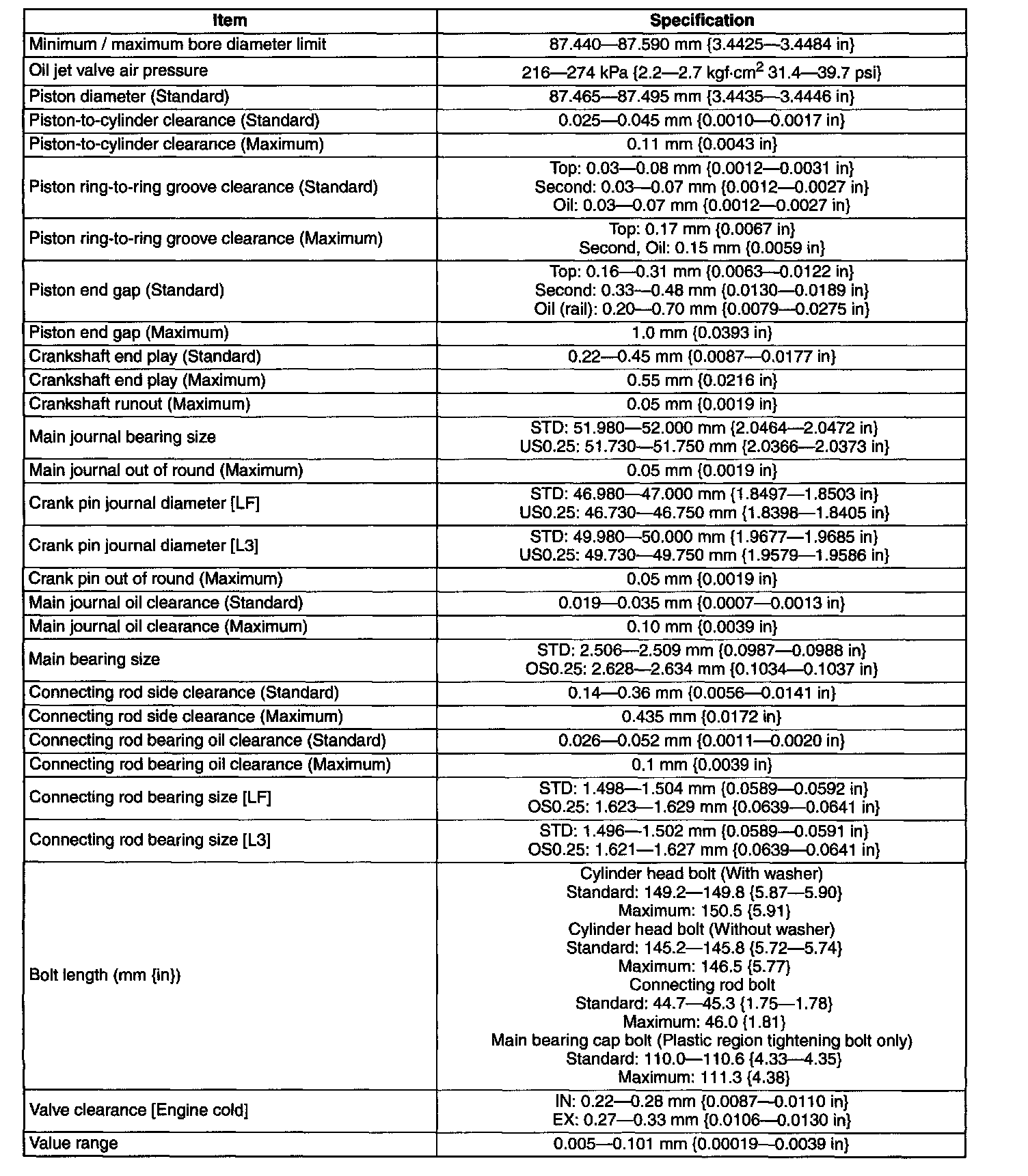 ENGINE SPECIFICATIONS - 2.3L