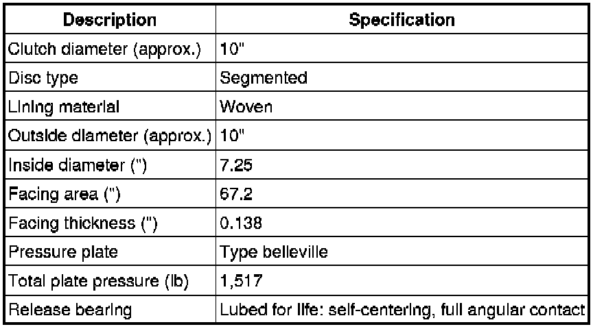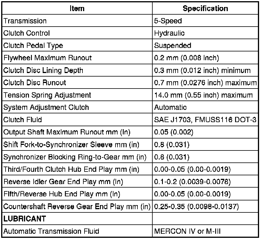 MANUAL TRANSMISSION AND CLUTCH SPECIFICATIONS
