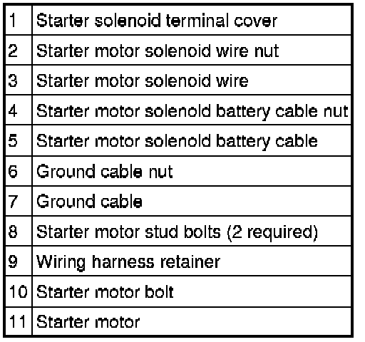 WARNING:When repairing starter motor or performing any maintenance in the area of the starter motor, note the heavy gauge input lead connected to the starter solenoid is hot at all times. Make sure the protective cap is installed over the terminal and is replaced after repair. Failure to follow these instructions may result in personal injury.
