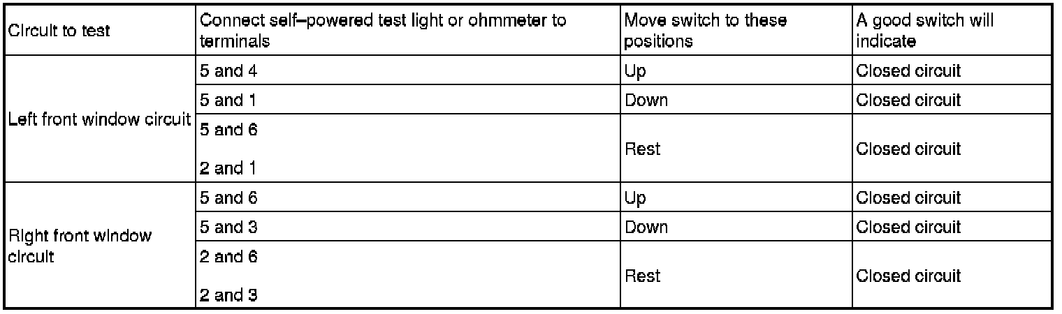 2. Inspect for continuity between the power window main switch terminals using an ohmmeter.
