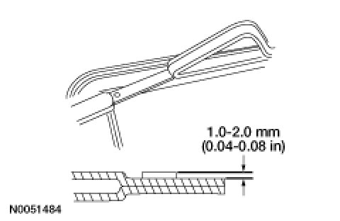 NOTE:Use either a high-ratio, electric or battery-operated caulk gun that will apply the urethane with less effort and a continuous bead.Apply urethane adhesive on top of the existing trimmed urethane adhesive bead on the pinch weld. Make sure that all gaps in the urethane adhesive are smoothed into one continuous bead starting and ending at the bottom of the windshield near the center.