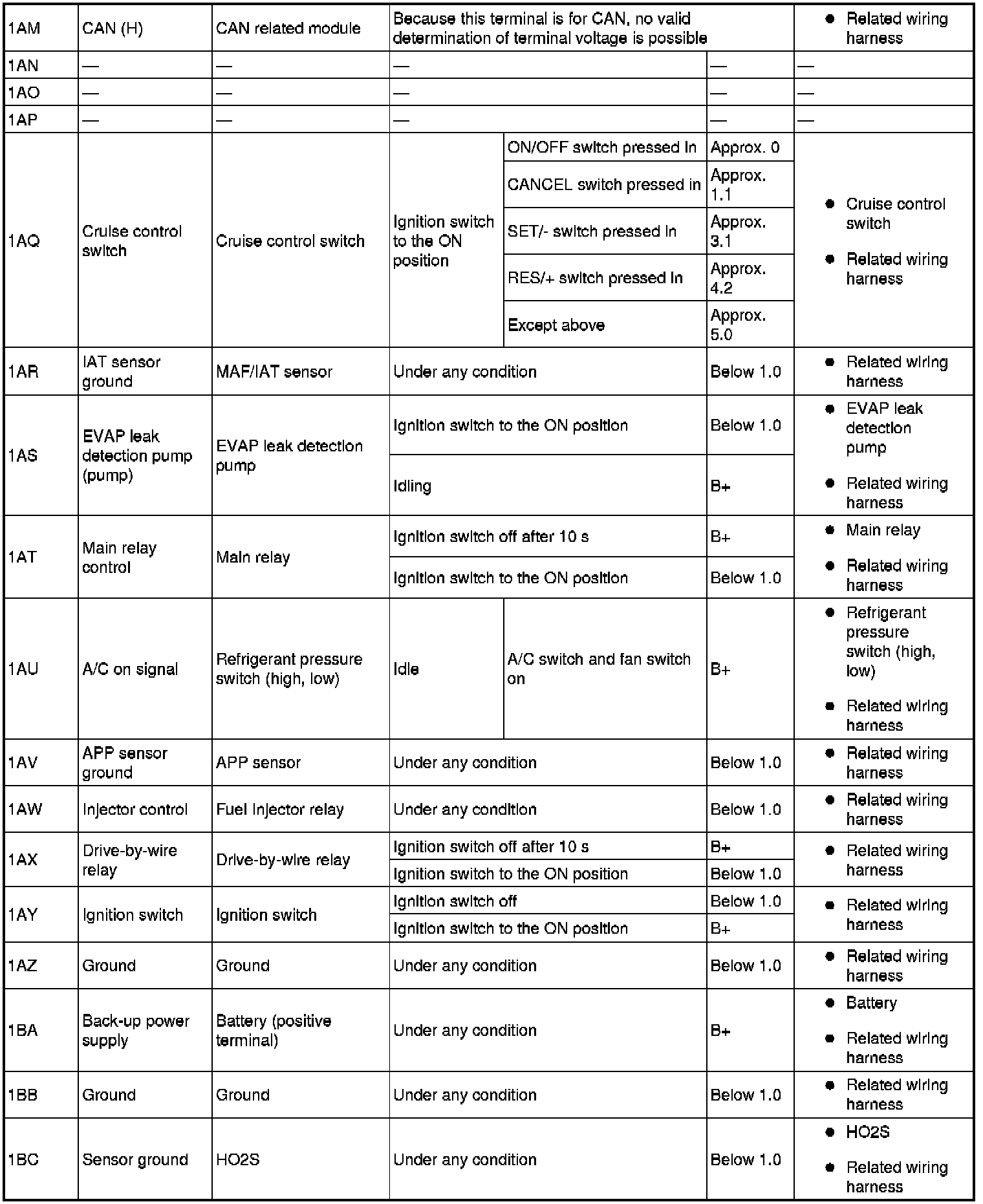 - The PCM terminal voltage can vary with the conditions when measuring and changes due to aged deterioration on the vehicle, causing false diagnosis. Therefore determine comprehensively where the malfunction occurs among the input systems, output systems, and the PCM.