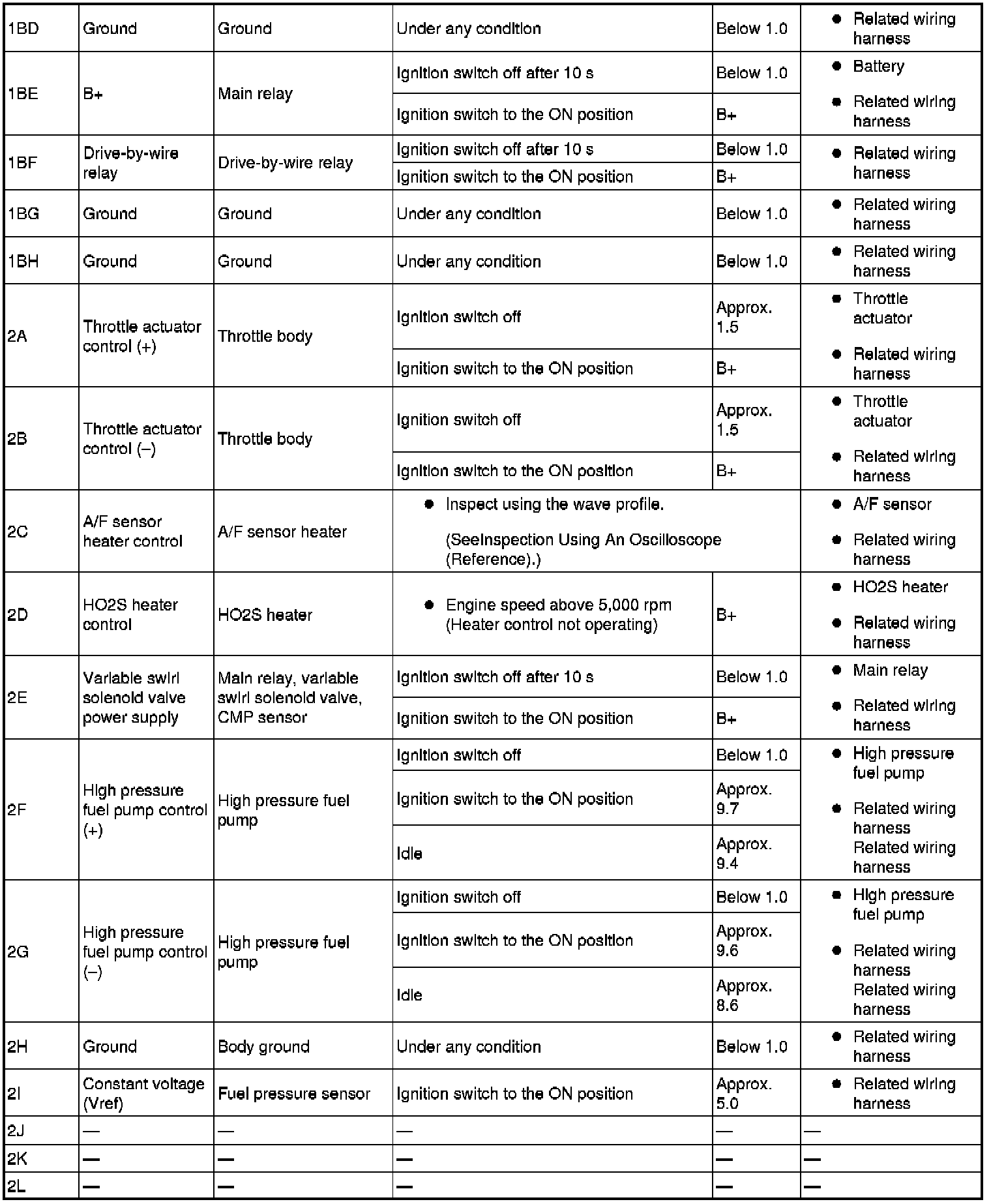- Fuel injection No.2, No.3: 2BH (+)-body ground (-)