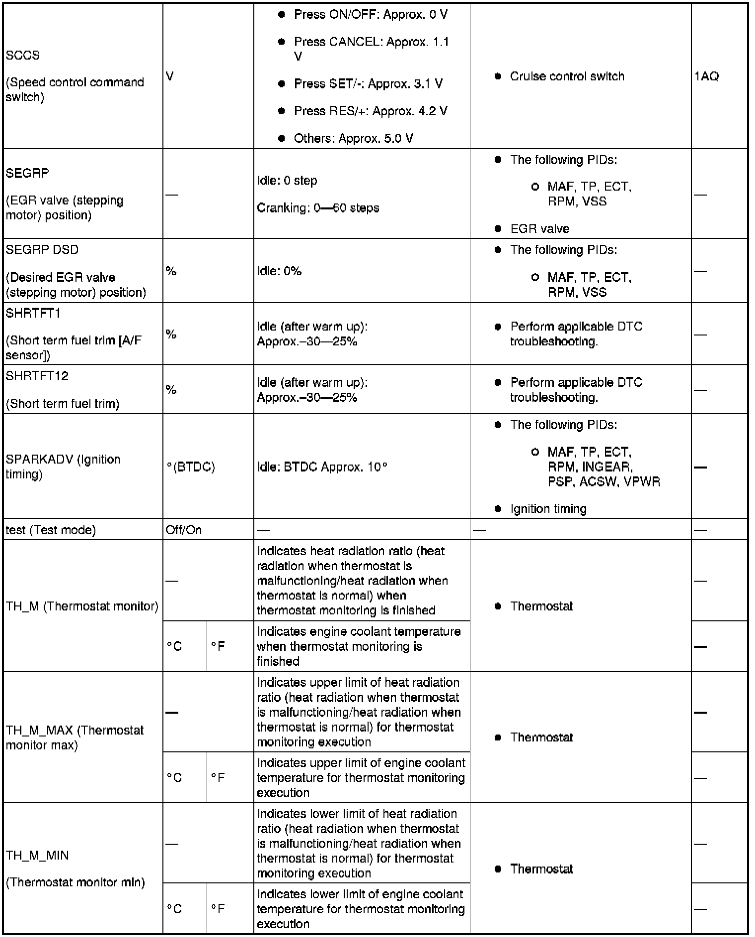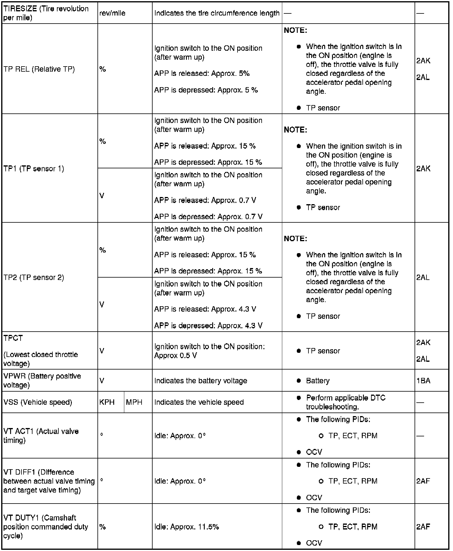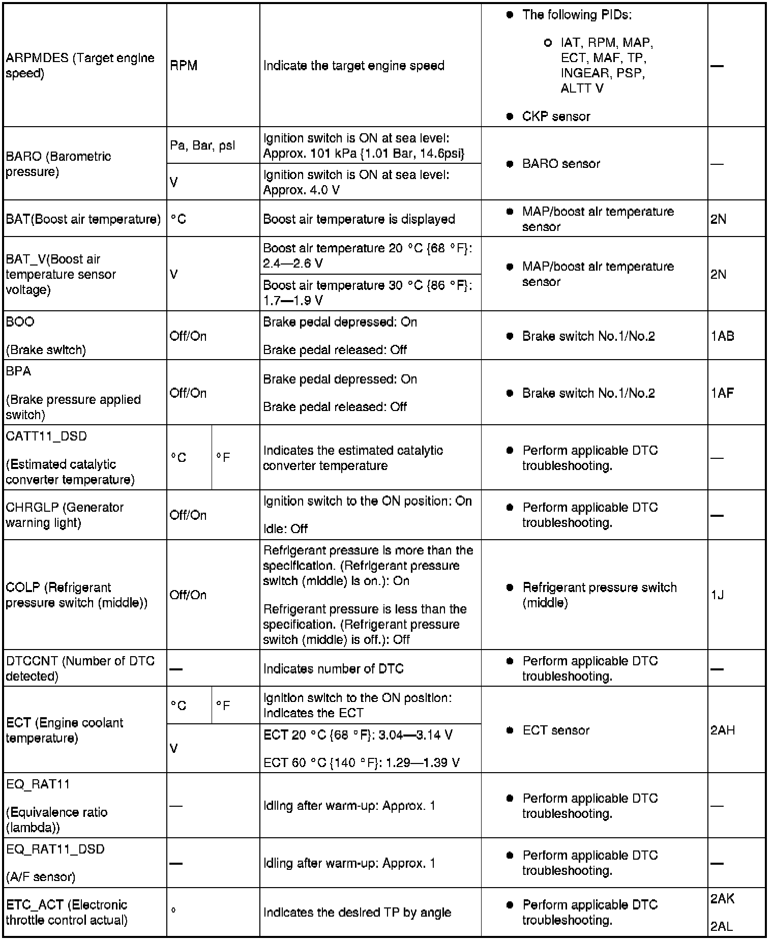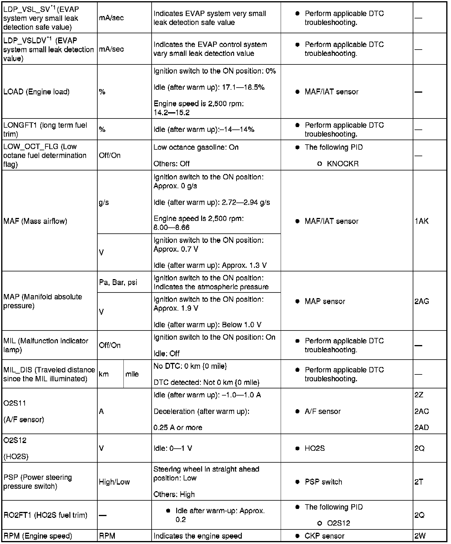 - If PID value is not within the specification, follow the instructions in the "Inspection item" column.
