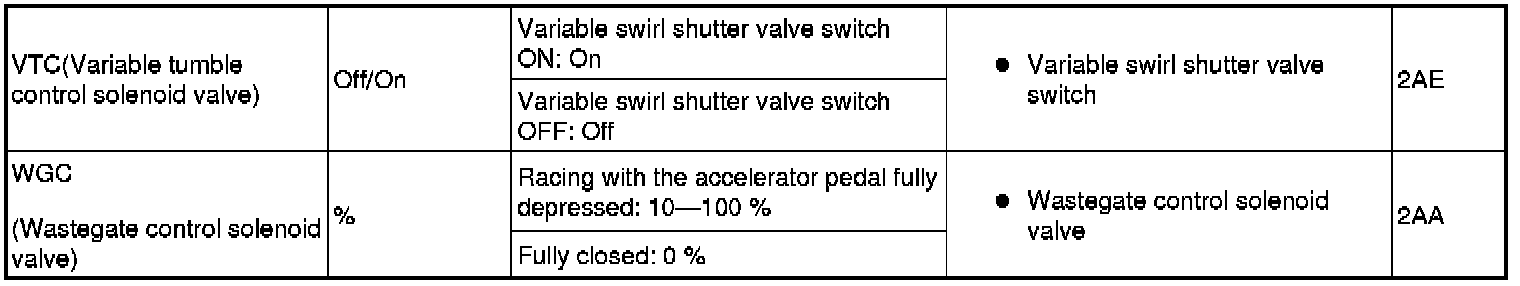 - ACCS, ALTF, ARPMDES, FAN_DUTY1, EVAPCP, FP, FUELPW1, GENVDSD, HTR11, HTR12, IMRC, INJ_1, INJ_2, INJ_3, INJ_4, SEGRP, test, VT DUTY1 Wt, WGC