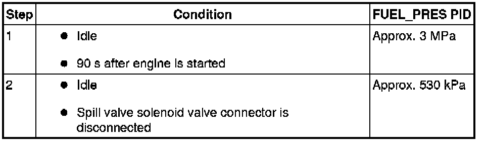 4. After warming up the engine, verify that the FUEL_PRES PID is at the standard value under the following conditions.