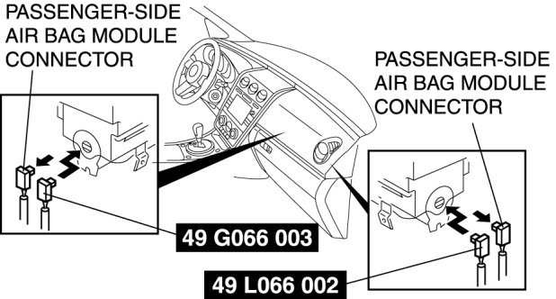 2. Disconnect the passenger-side air bag module connector.