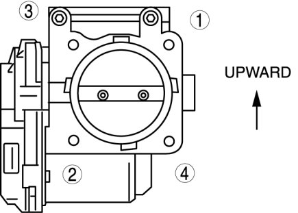 Tighten the throttle body installation bolts in the order shown in the figure.