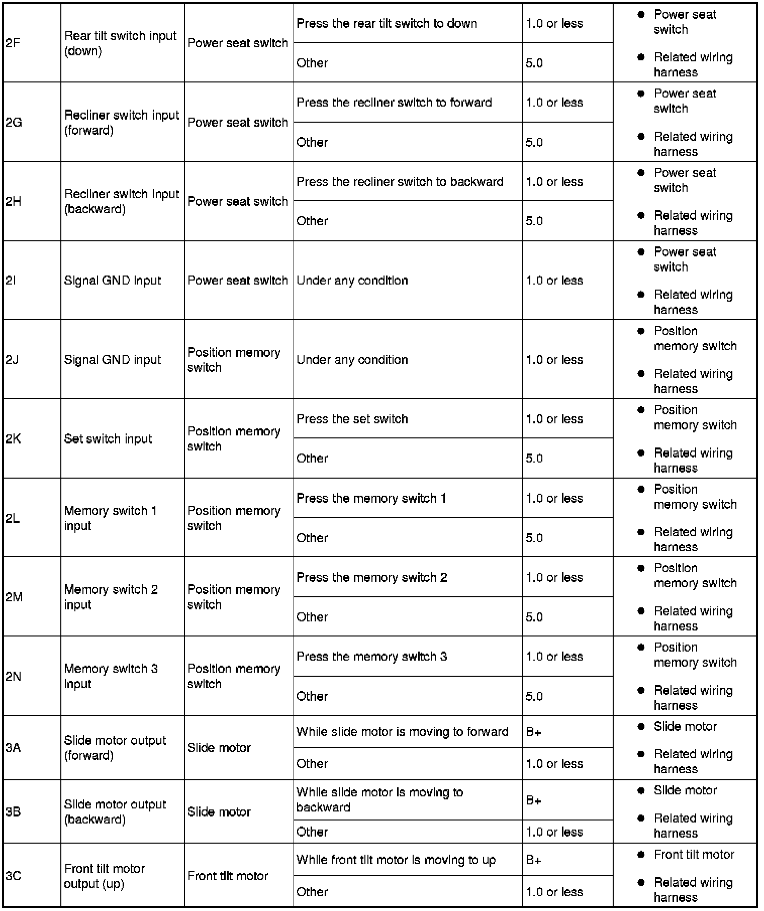 2. If the system does not work properly even though the inspection items or related wiring harnesses do not have any malfunction, replace the position memory control module.